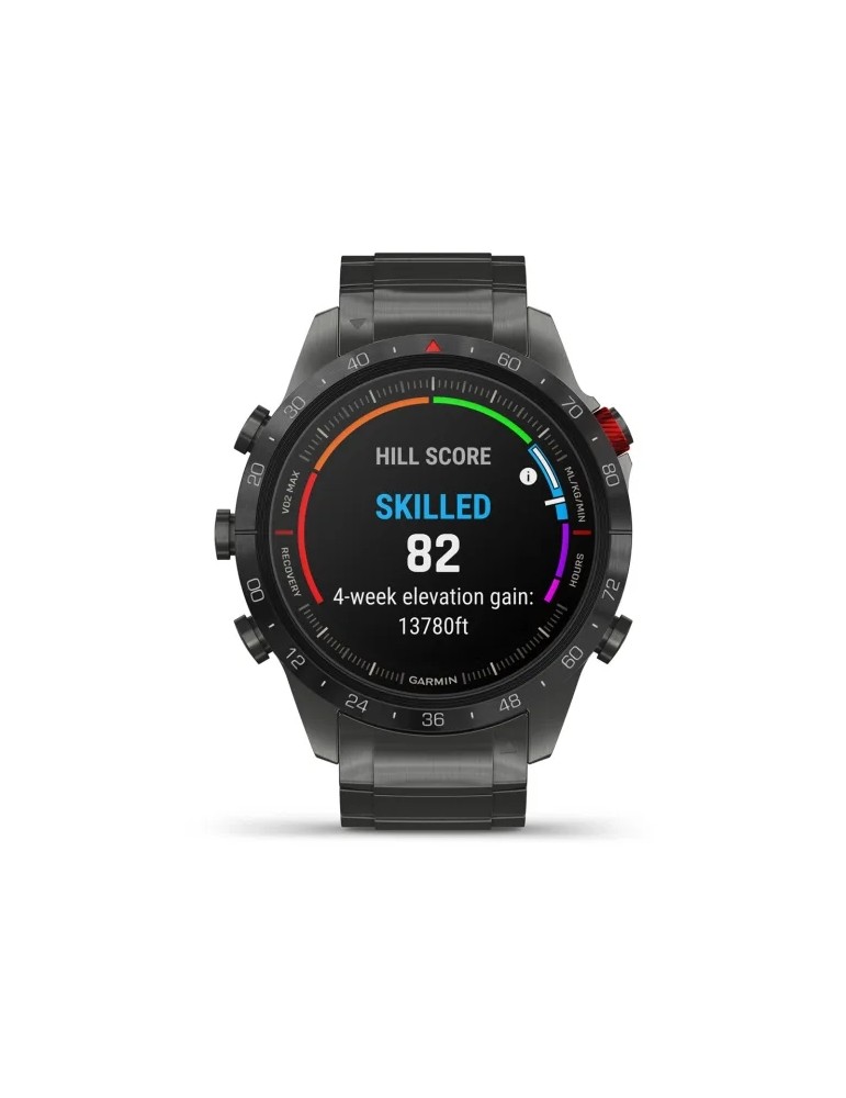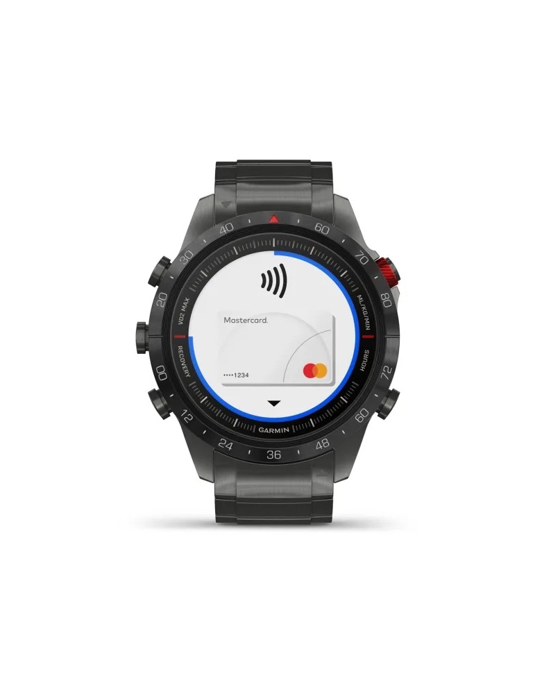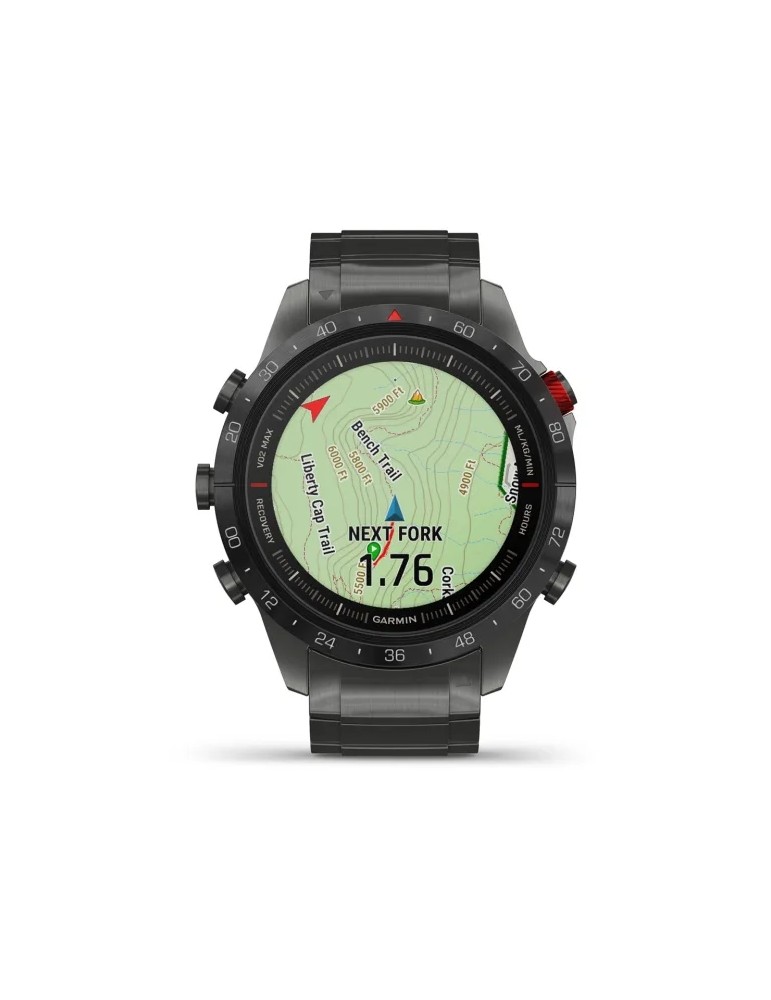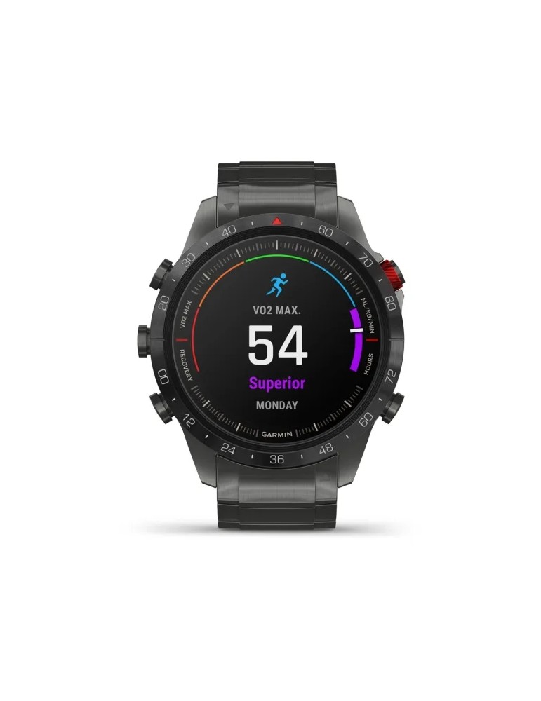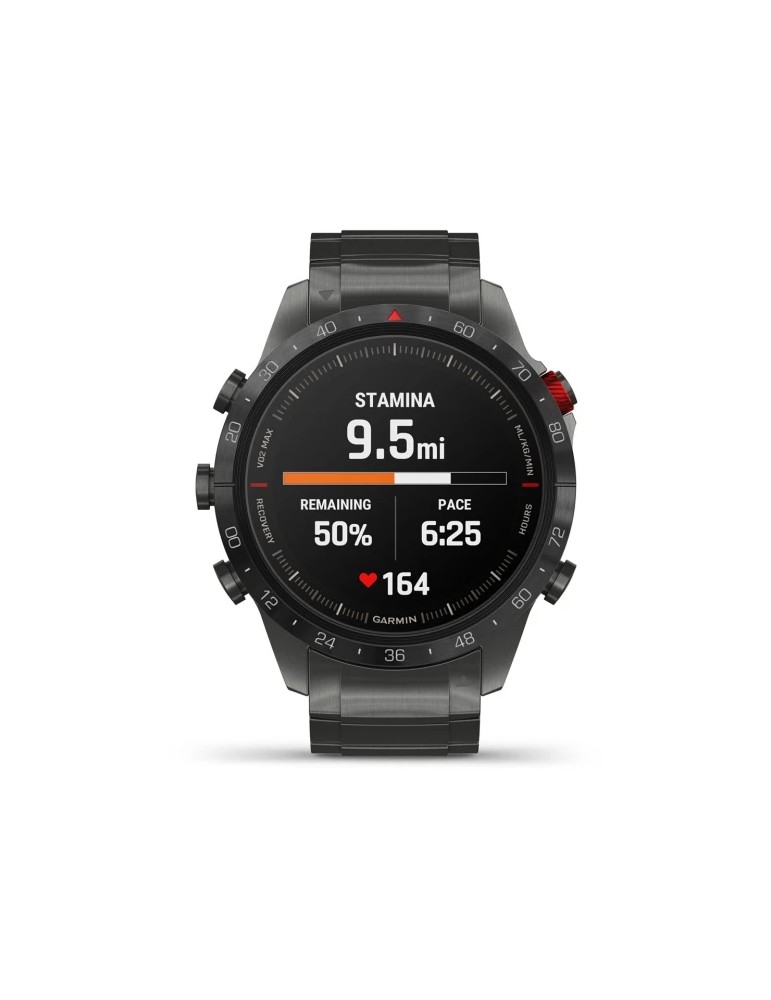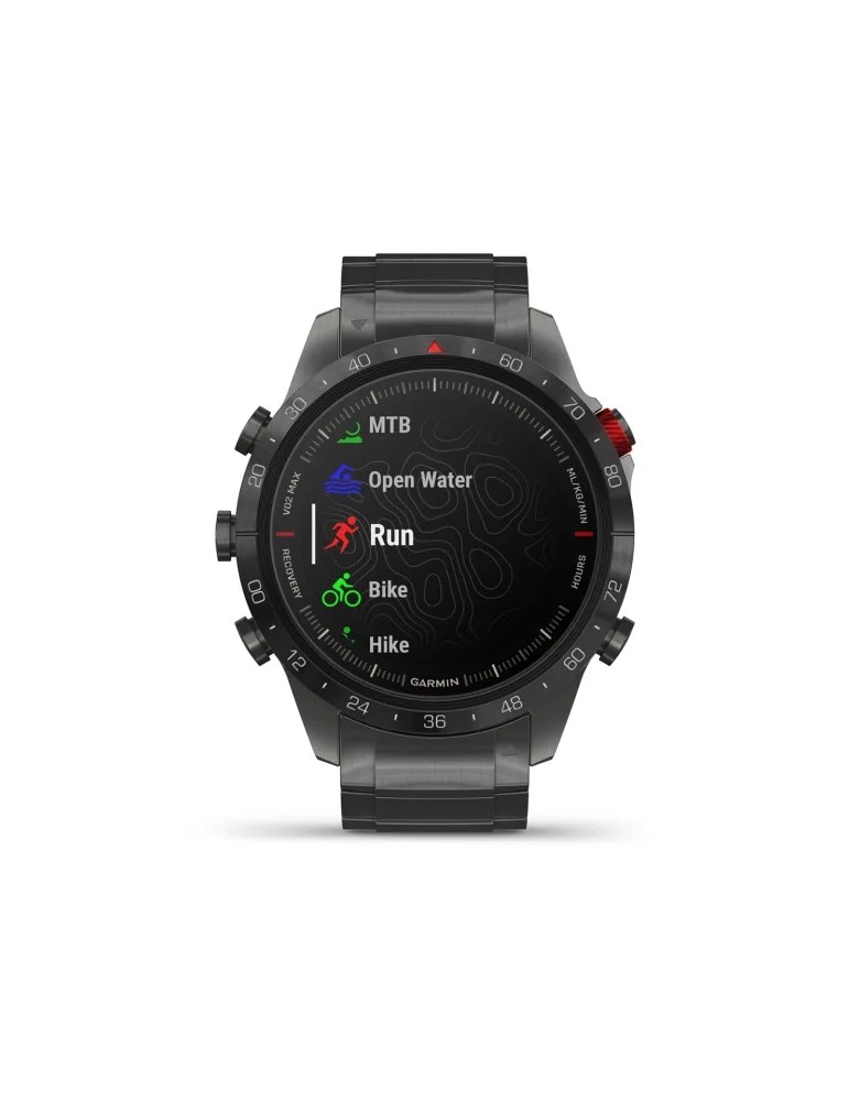 Сучасний годинник-інструмент MARQ® Athlete (Gen 2) - Performance Edition, створений для непохитних спортсменів, оснащений розкішним сенсорним AMOLED-дисплеєм з традиційними кнопками управління. Корпус діаметром 46 мм виготовлений з титану 5-го Класу, гібридний титановий браслет з червоними силіконовими ланками та застібкою-метеликом надає годиннику сучасного спортивного вигляду.