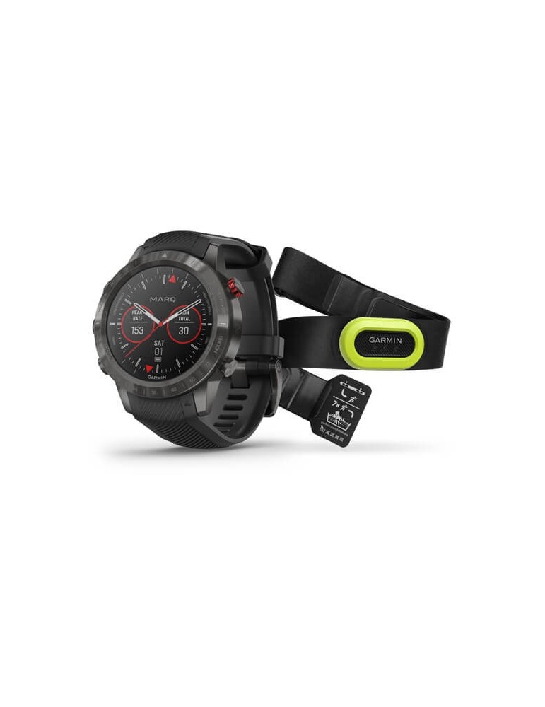 - Підключіть свій MARQ Athlete до нагрудного пульсометра для обміну даними, а також синхронізуйте свій годинник з сумісним спортивним обладнанням або програмами на сумісному смартфоні.