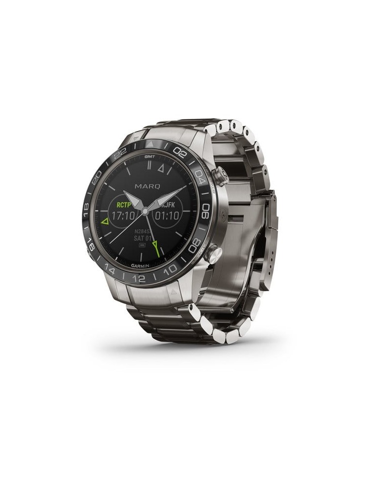 Немає значення, чи є ви професійним пілотом, чи просто захоплюєтесь польотами, годинник MARQ Aviator підтримає вашу пристрасть. Це єдиний у своєму роді сучасний годинник-інструмент, який містить всесвітню базу даних аеропортів і карти з детальною інформацією. Крім того, модель MARQ Aviator має ряд спеціальних авіаційних функцій для підвищення безпеки: навігацію Direct-To, метеорологічний радар NEXRAD та можливість інтеграції з авіаційним обладнанням Garmin. З датчиком вимірювання кисню у крові (пульсоксиметром).