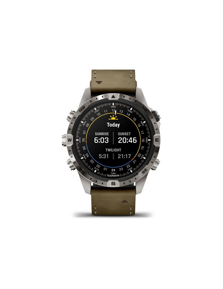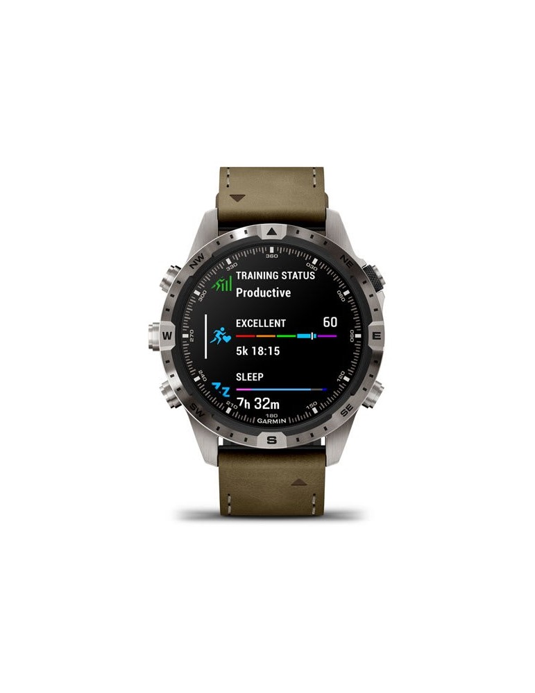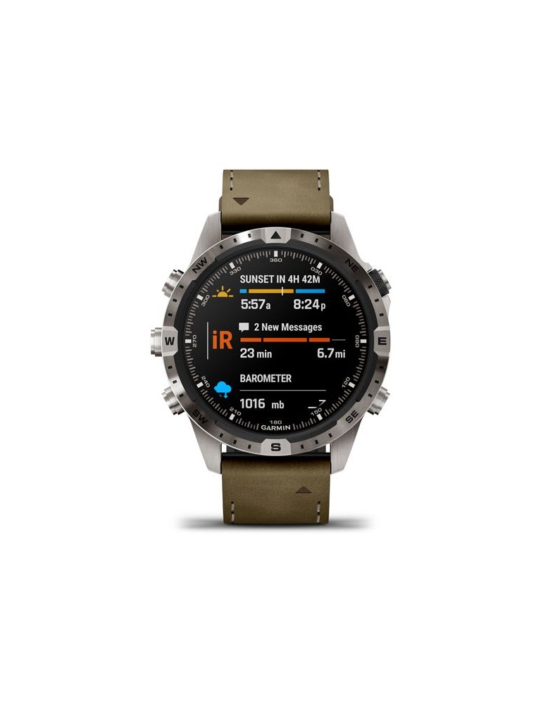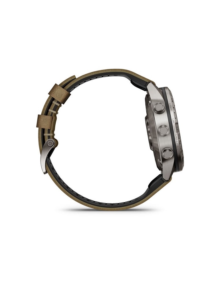 Цей неперевершений сучасний годинник-інструмент створений, щоб ви могли заявити про себе. Приголомшливий сенсорний дисплей AMOLED, корпус 46 мм з титану Класу 5, гібридний ремінець зі шкіри та фторовуглецевого каучуку FKM, традиційне кнопкове управління у поєднанні з сенсорним екраном — усе це забезпечує надвисоку міцність та надійність за будь-яких умов.