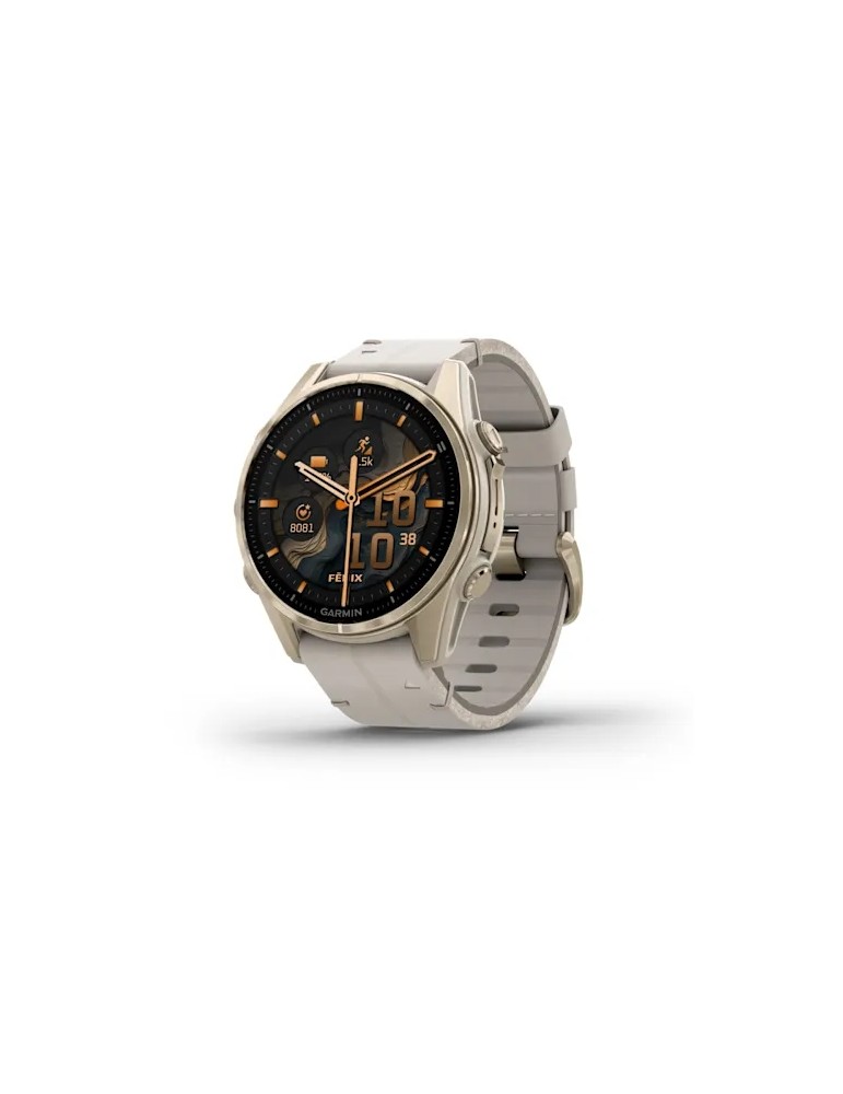 Garmin fenix 8 AMOLED (43 мм) - Sapphire, М'яке золото, Limestone Шкіряний Ремінець - Смарт-годинник