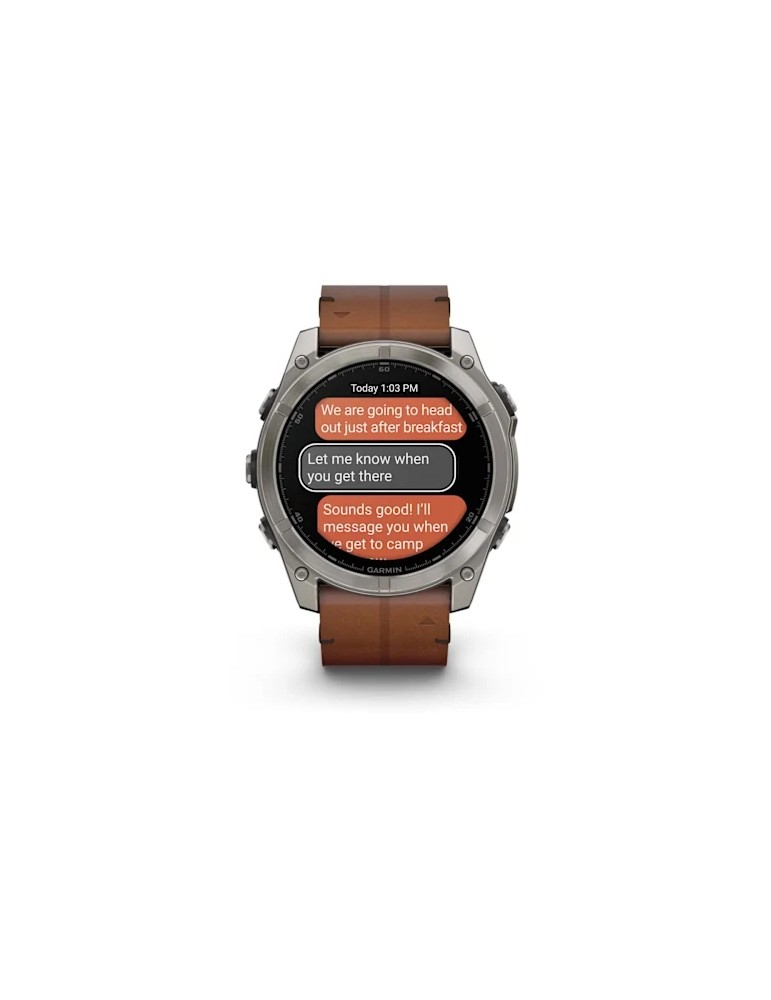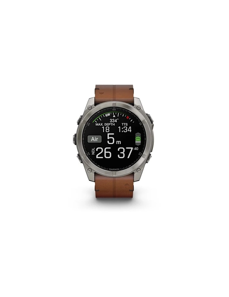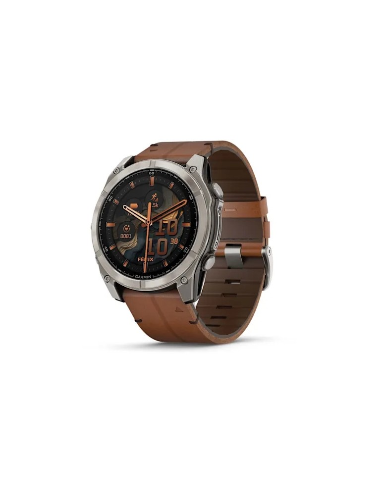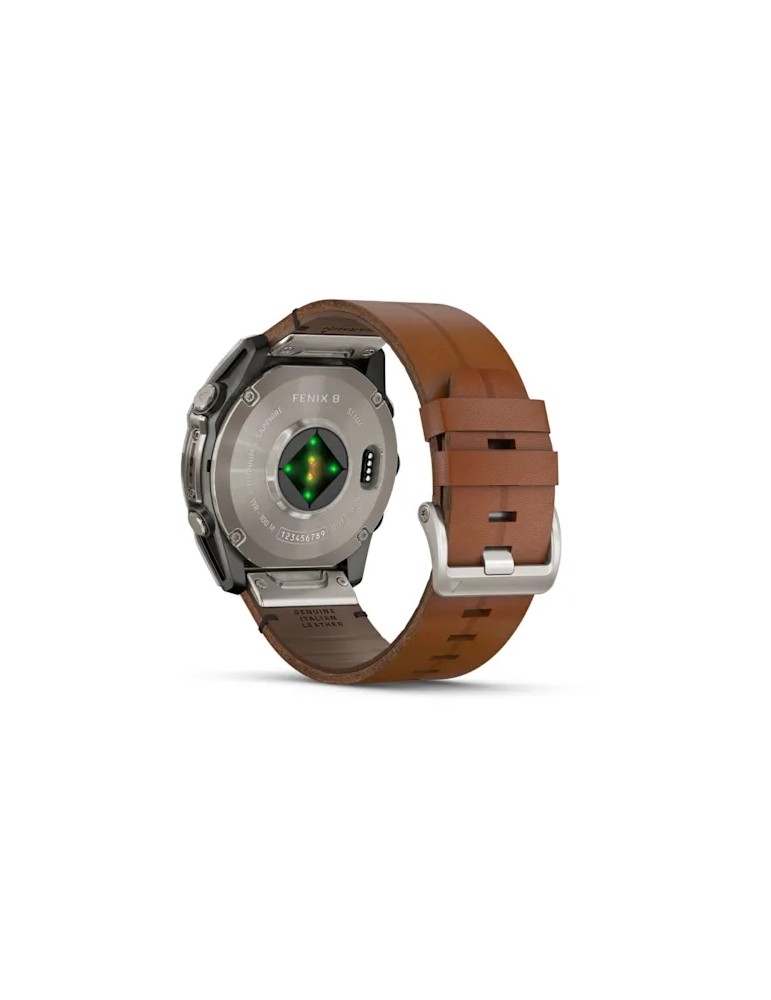 Garmin fenix 8 AMOLED (51 мм) - Sapphire, Карбоново-Сірий DLC з Каштановим Шкіряним Ремінцем - Смарт-годинник
