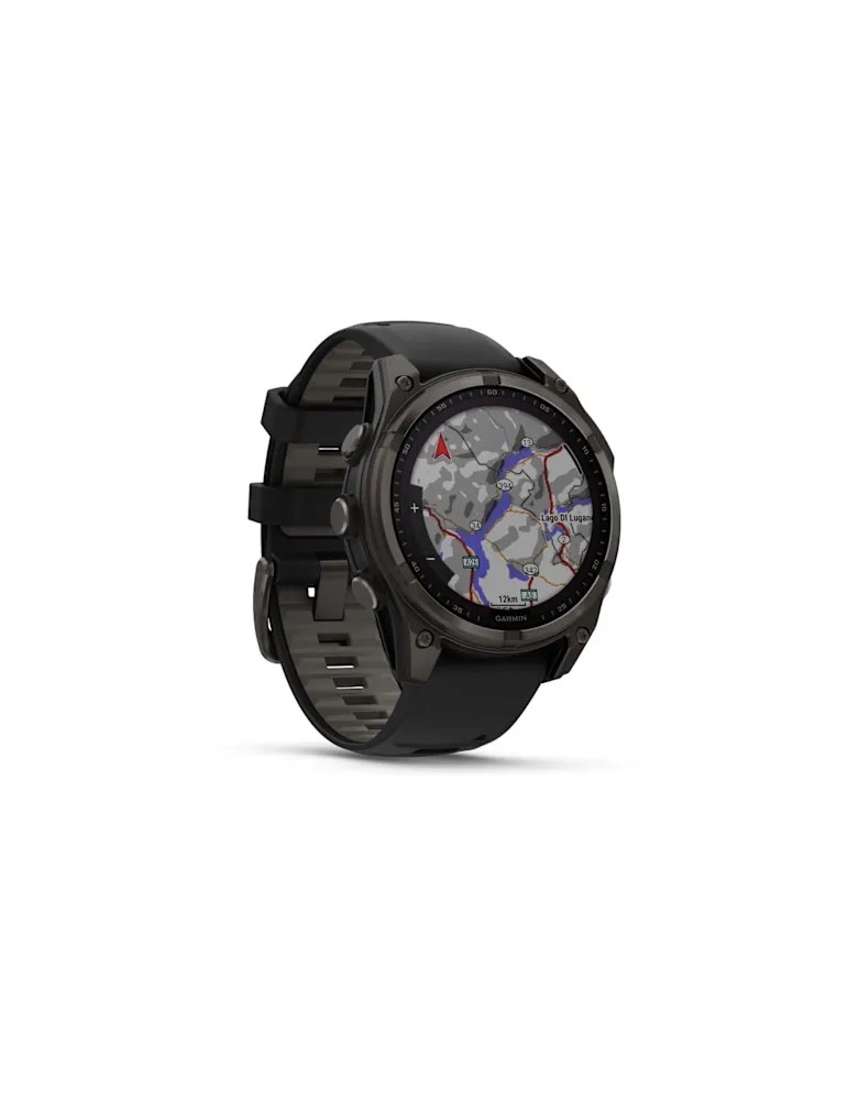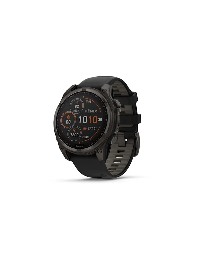 Garmin fenix 8 Solar (47 мм) - Sapphire, Карбоново-Сірий DLC Титан, Чорний/Гальковий сірий ремінець - Смарт-годинник