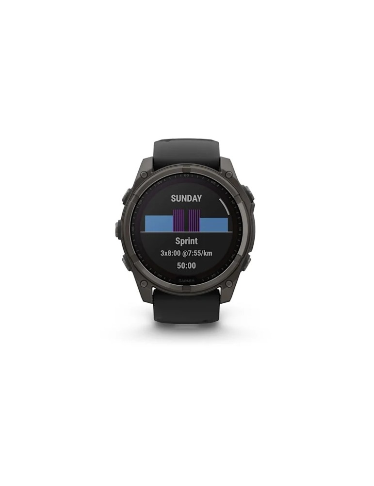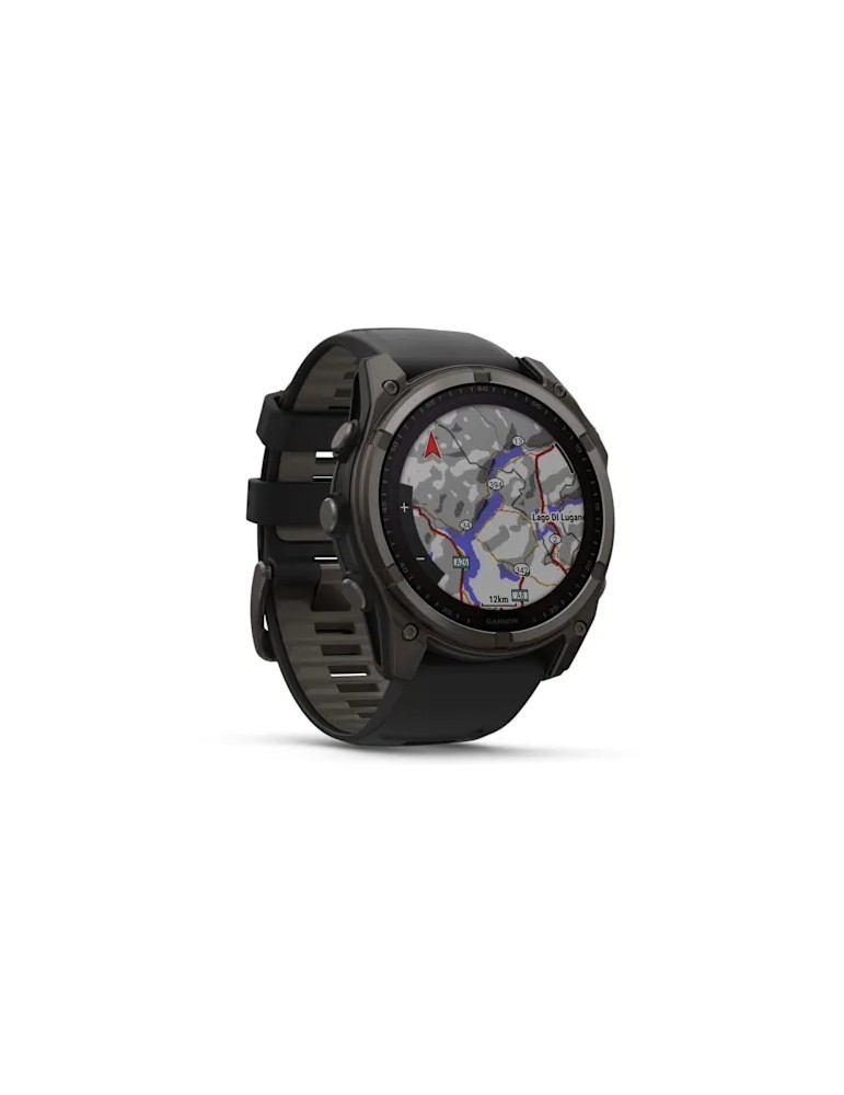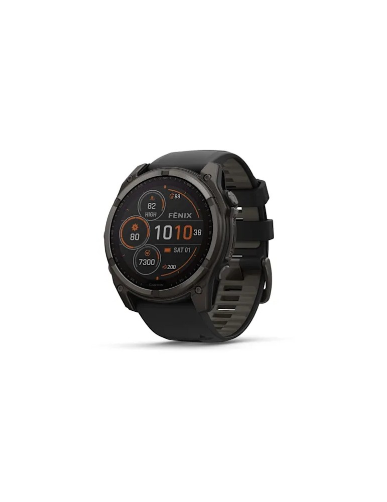 Garmin fenix 8 Solar (51 мм) - Sapphire, Карбоново-Сірий DLC Титан, Чорний/Гальковий сірий ремінець - Смарт-годинник