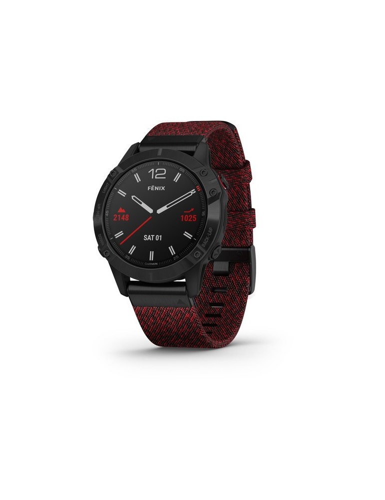 Garmin fenix 6 SAPPHIRE - Black DLC with Heathered Red Nylon Band