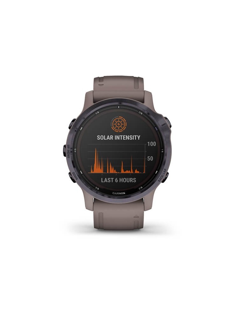 Представляємо вашій увазі перший годинник Garmin з підзарядкою від сонячного світла, для того, щоб ваші пригоди були необмеженими у часі. Великий екран 1.4” моделі fenix 6X Pro Solar вкритий мінеральним склом Power Glass, яке дозволяє годиннику заряджатись від сонця. З датчиком вимірювання кисню у крові (пульсоксиметром).