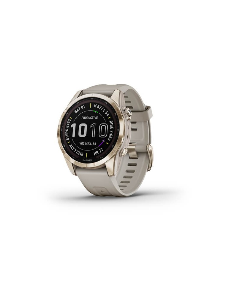 Garmin fenix 7S Sapphire Solar Cream Gold Titanium with Light Sand Band