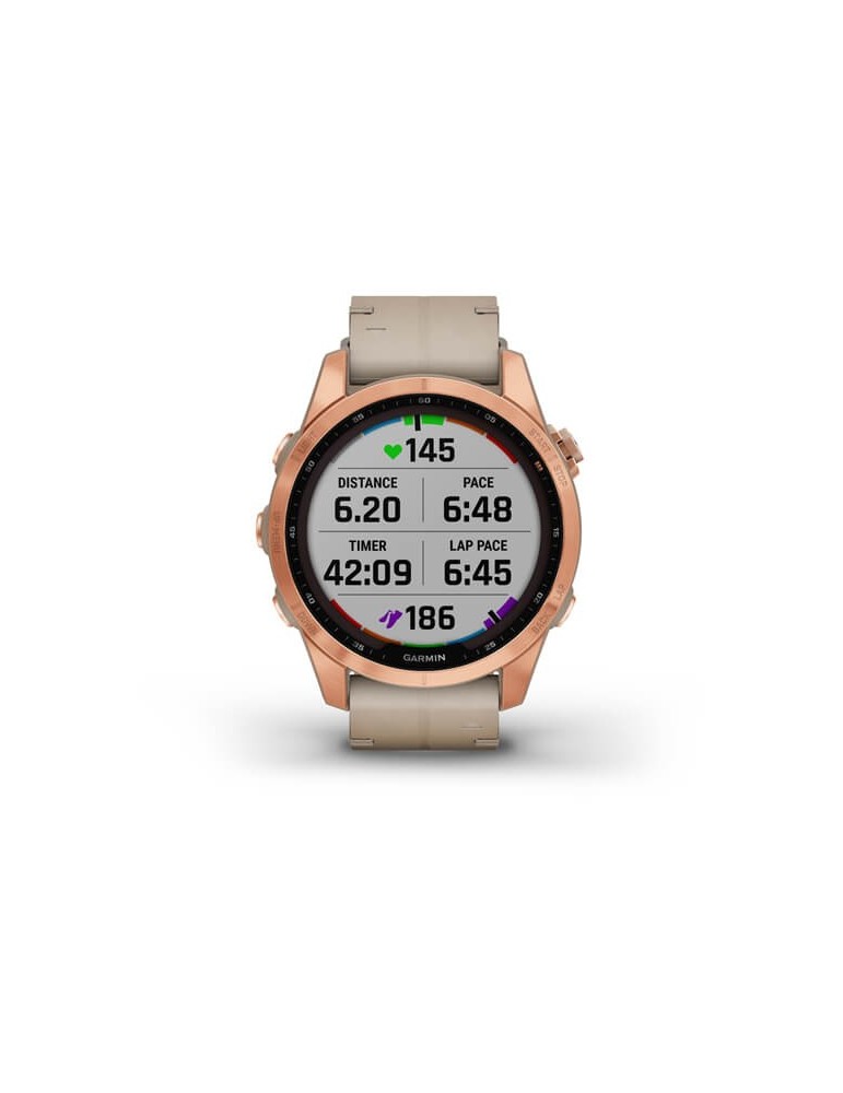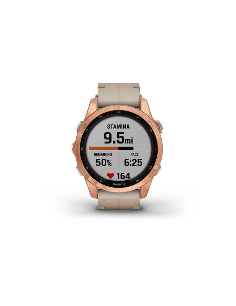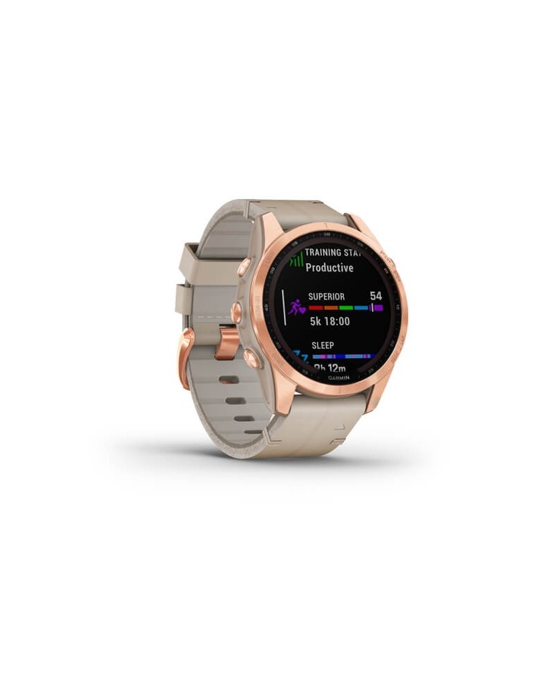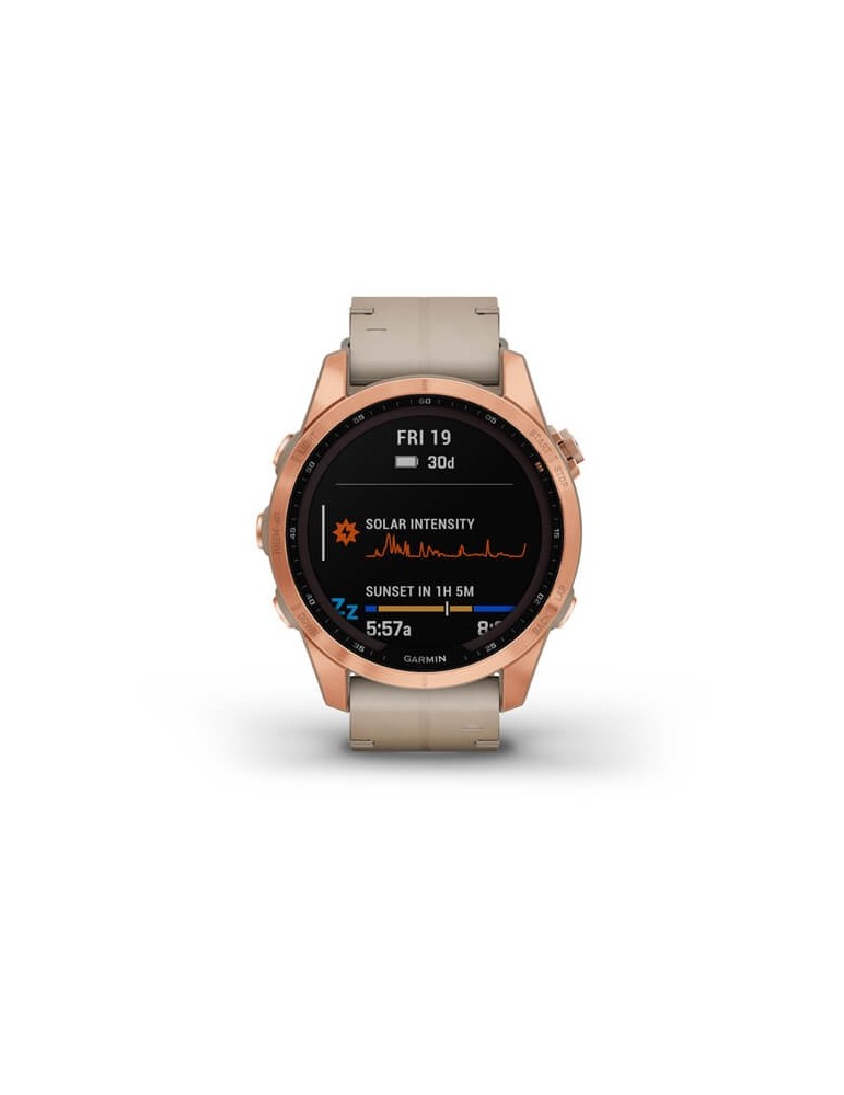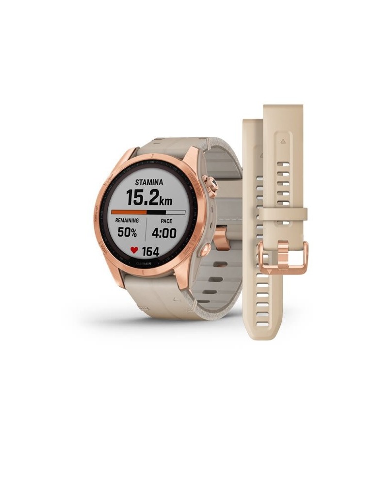 Garmin fenix 7S Sapphire Solar Rose Gold Titanium with Limestone Leather Band (includes limestone silicone band)