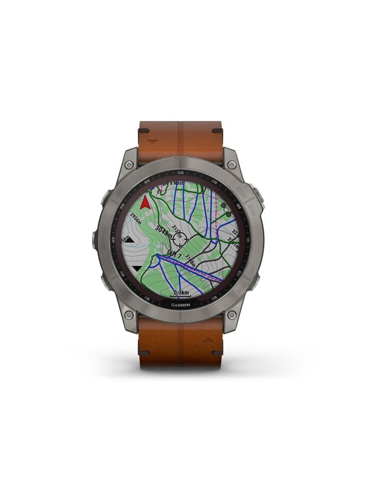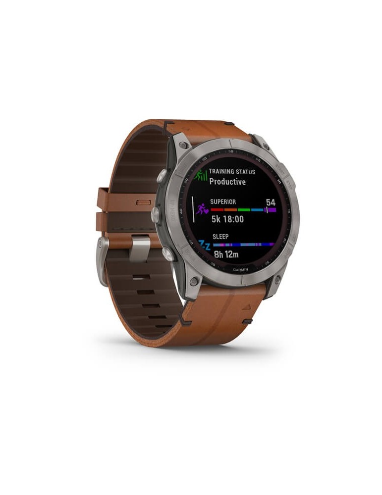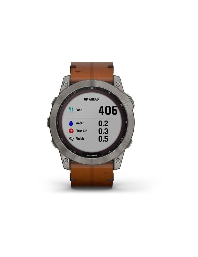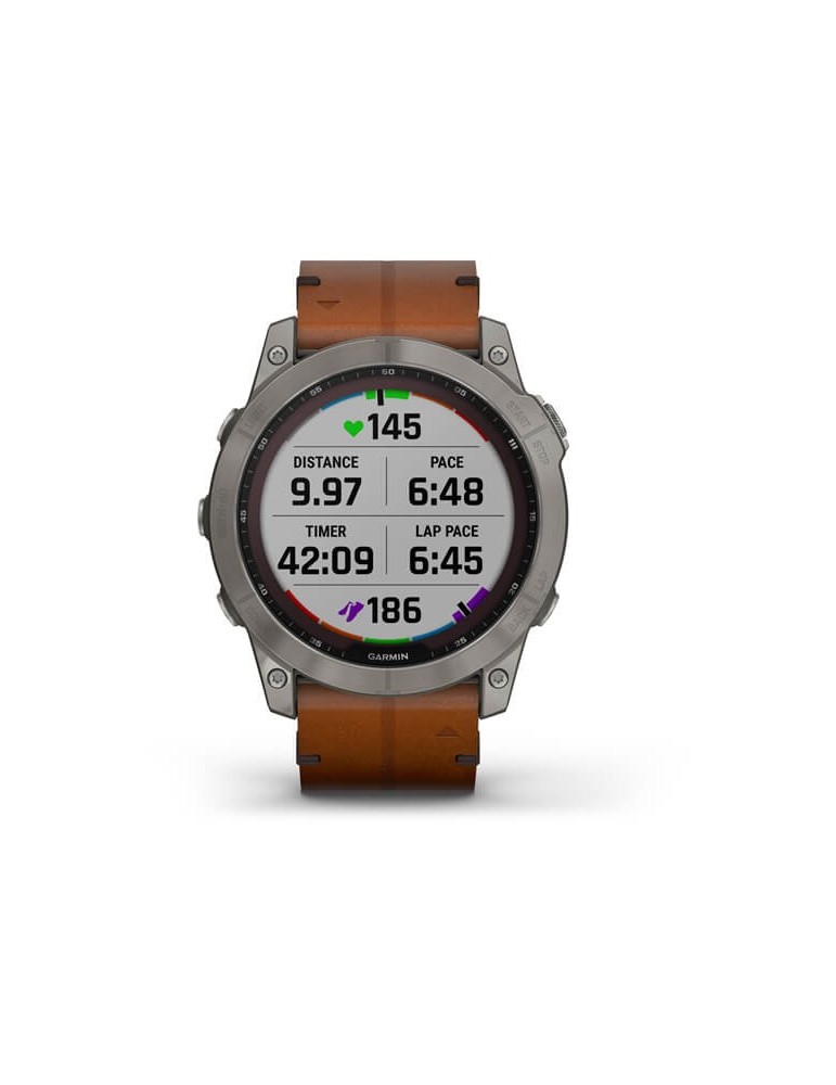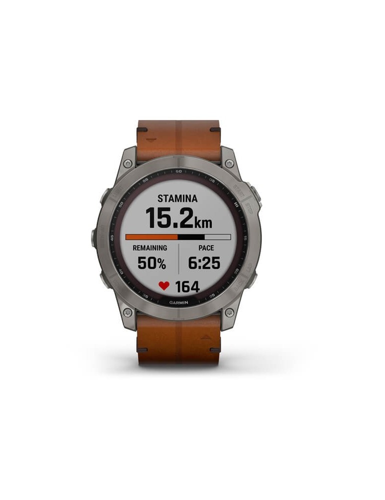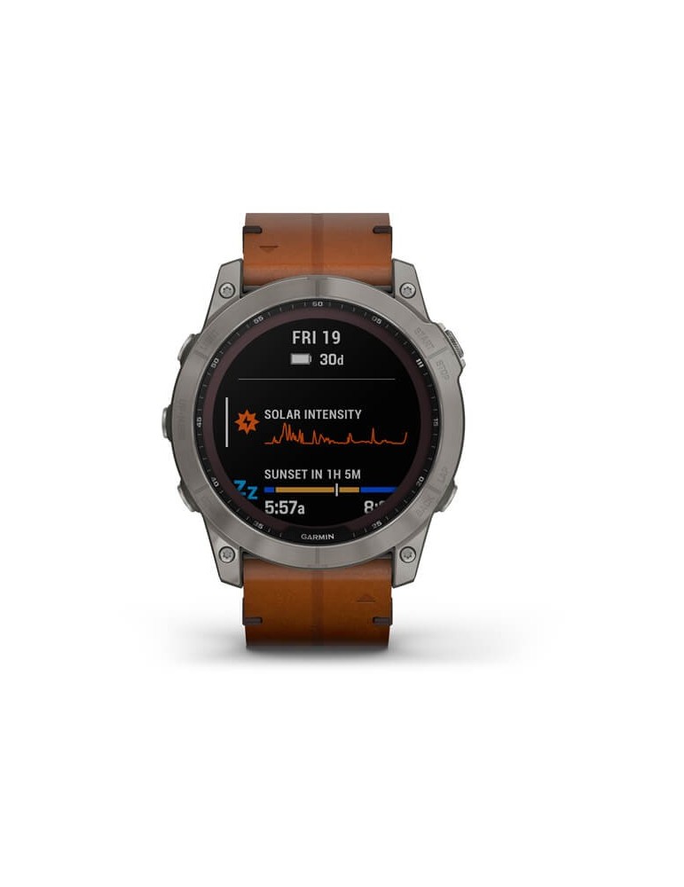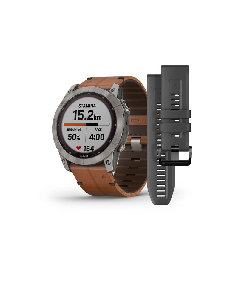 Garmin fenix 7X Sapphire Solar Titanium with Chestnut Leather Band (includes graphite silicone band)