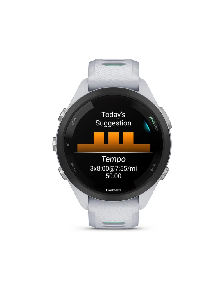 Що як ваша майбутня гонка стане неповторною? Що як персоналізовані щоденні тренування на зап'ясті допоможуть вам отримати максимальну віддачу від пробіжок? З розумним годинником Forerunner 265 усі дані про продуктивність та здоров'я можна легко прочитати на яскравому сенсорному AMOLED-дисплеї. Готуйтесь перевершувати себе.