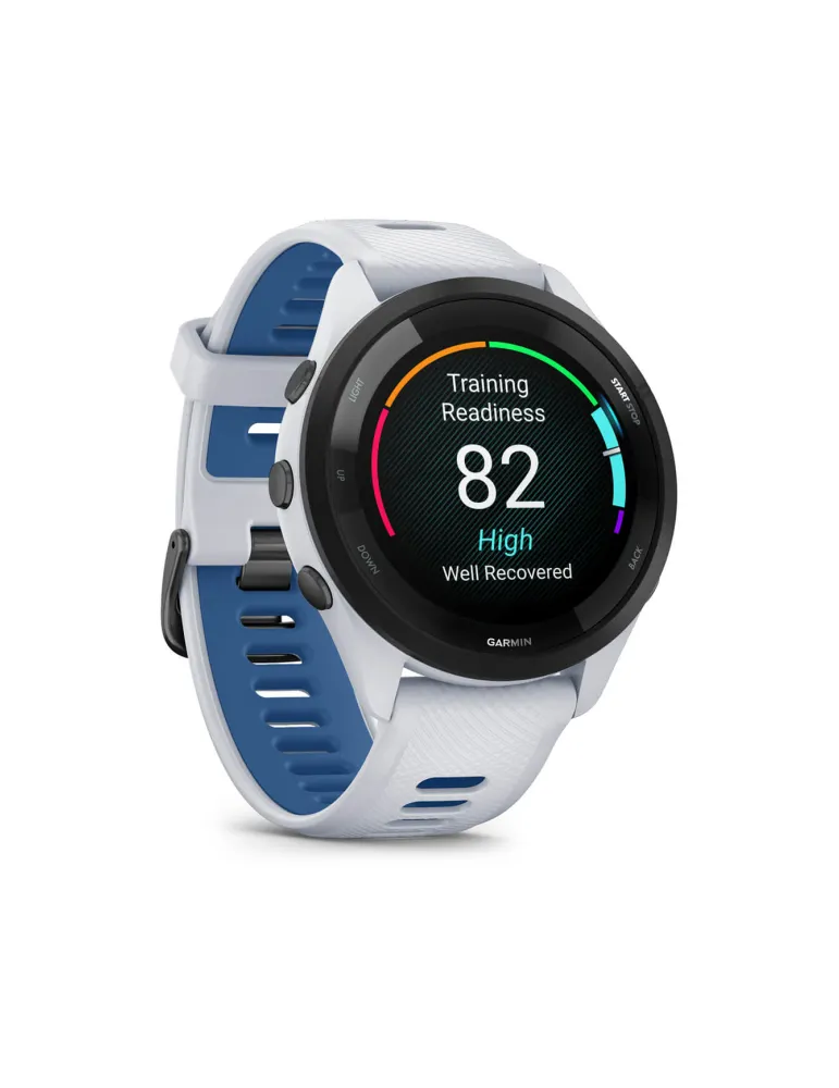 Garmin Forerunner 265 - Black Bezel with Whitestone Case and Whitestone/Tidal Blue Silicone Band
