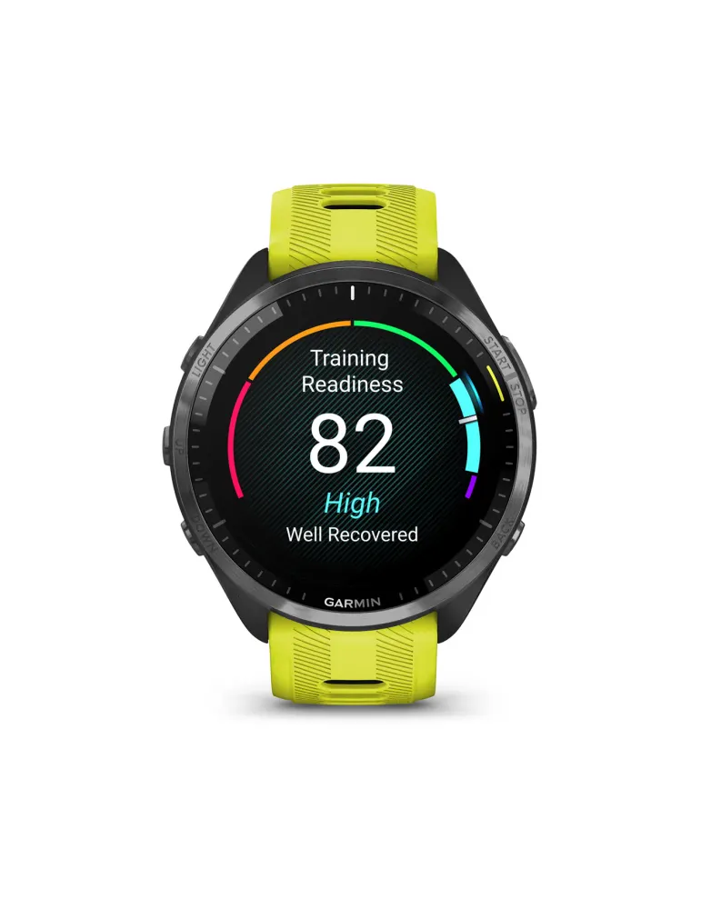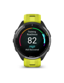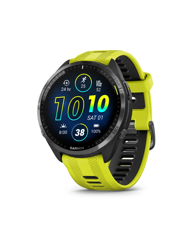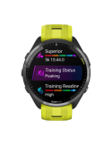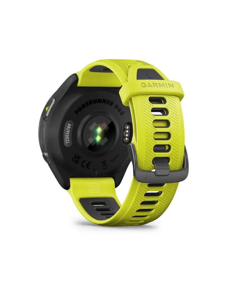 Garmin Forerunner 965 - Carbon Gray DLC Titanium Bezel with Black Case and Amp Yellow/Black Silicone Band