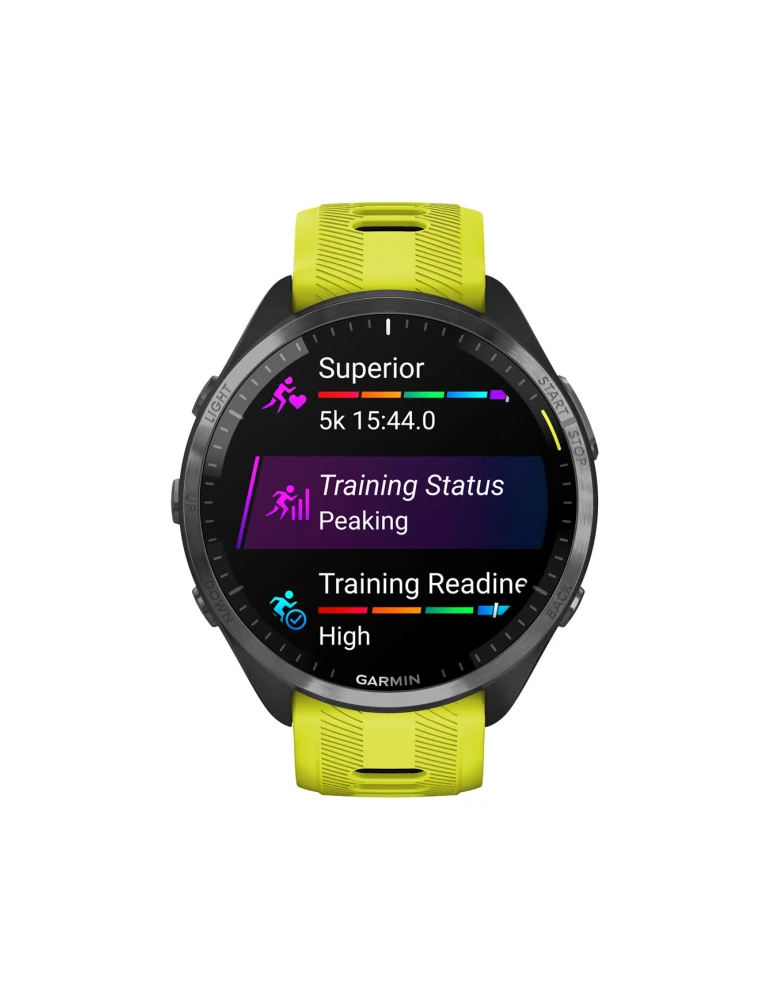 Що, якби кожна ваша пробіжка стала перемогою, гідною п'єдесталу? І ви знали, що підготовлені до змагань, та готові пожинати плоди своїх зусиль? Розумний годинник Forerunner 965 демонструє величезний спектр статистичних та аналітичних даних на яскравому барвистому дисплеї AMOLED. І скоро ви зможете реалізувати ваші амбітні цілі.