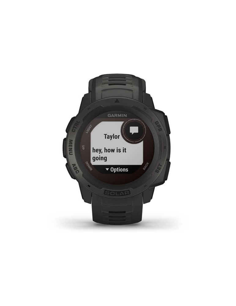 Синхронізуйте Instinct з комунікатором inReach® (продається окремо; необхідна підписка), щоб переглядати та відправляти повідомлення, отримувати метеорологічні прогнози та відправляти SOS повідомлення у цілодобовий сервіс вирішення екстремальних ситуацій GEOS.
