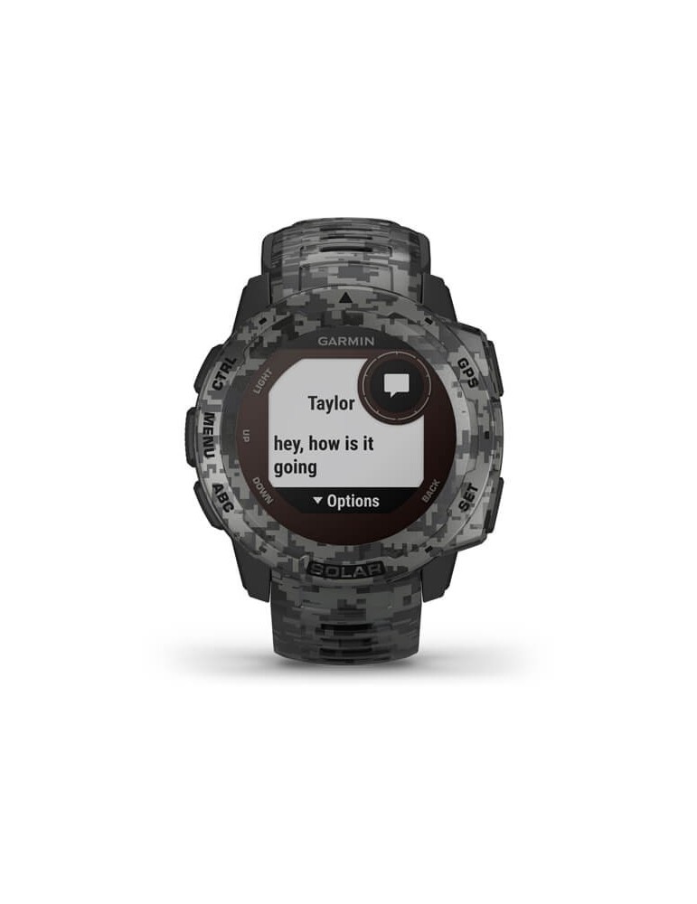 Синхронізуйте Instinct з комунікатором inReach® (продається окремо; необхідна підписка), щоб переглядати та відправляти повідомлення, отримувати метеорологічні прогнози та відправляти SOS повідомлення у цілодобовий сервіс вирішення екстремальних ситуацій GEOS.