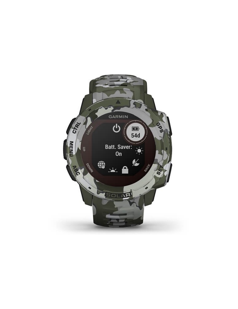 Завдяки технології зарядки від сонячної енергії Instinct забезпечує додатковий заряд, коли ви перебуваєте під сонячними променями. Якщо ви захоплюєтесь активним відпочинком на відкритому повітрі, Instinct може забезпечити безпрецедентну автономність.