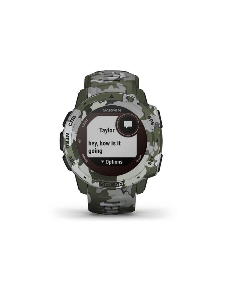 Синхронізуйте Instinct з комунікатором inReach® (продається окремо; необхідна підписка), щоб переглядати та відправляти повідомлення, отримувати метеорологічні прогнози та відправляти SOS повідомлення у цілодобовий сервіс вирішення екстремальних ситуацій GEOS.