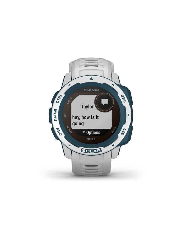 Синхронізуйте Instinct з комунікатором inReach® (продається окремо; необхідна підписка), щоб переглядати та відправляти повідомлення, отримувати метеорологічні прогнози та відправляти SOS повідомлення у цілодобовий сервіс вирішення екстремальних ситуацій GEOS.