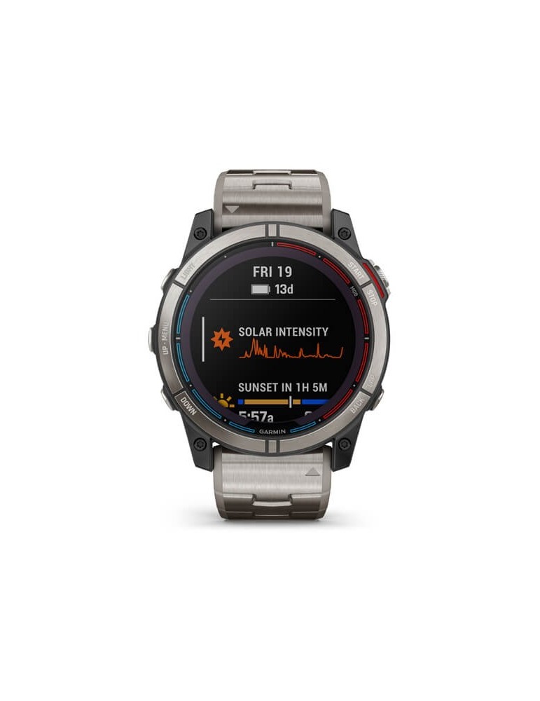 Міцний сучасний дизайн з титановим корпусом, великим барвистим дисплеєм 1,4” з функцією постійно увімкненого екрана, високоміцне сапфірове скло та титановий безель навколо циферблату з алмазоподібним карбоновим покриттям нікого не залишить байдужим. Годинник використовує сонячну енергію для продовження роботи від батареї.