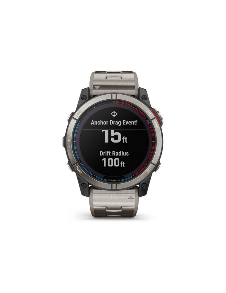 Для кращої обізнаності щодо навколишньої ситуації на воді годинник quatix® 7X – Solar Edition попереджає вас про зміни припливу та дрейфу відносно місця якірної стоянки.