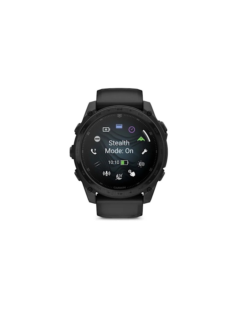 Цей вдосконалений тактичний розумний годинник із GPS оснащений яскравим 1,4-дюймовим AMOLED-дисплеєм, титановим безелем і сапфіровим склом, а також покращеним графічним інтерфейсом. Він перевірений на відповідність військовим стандартам США на стійкість до тепла, ударів і води.