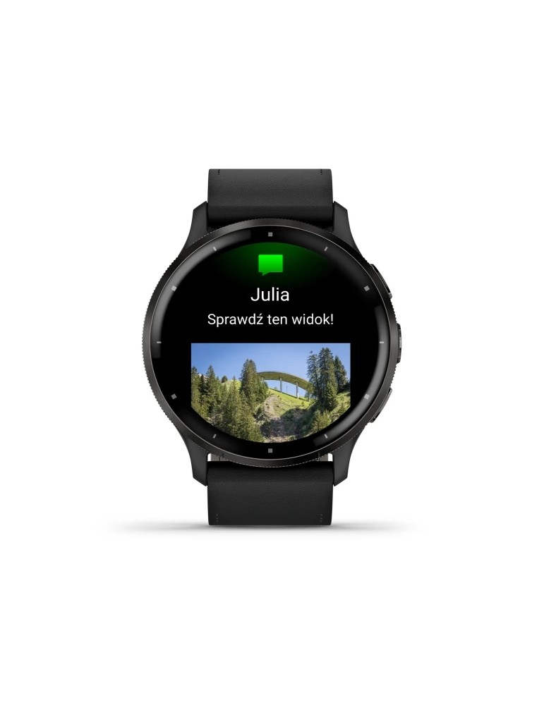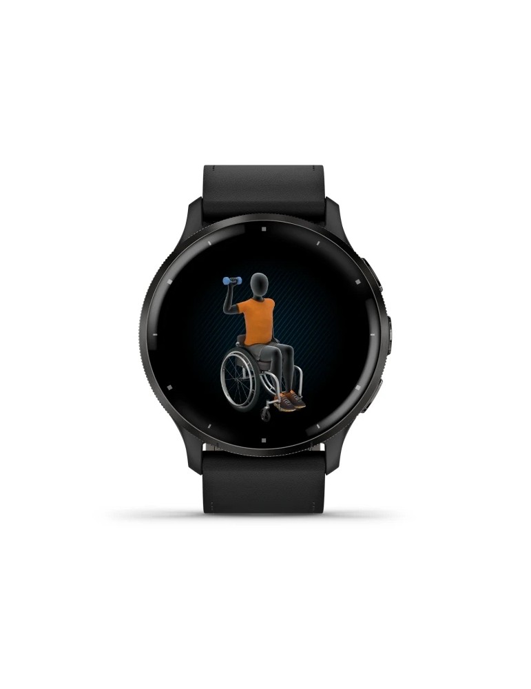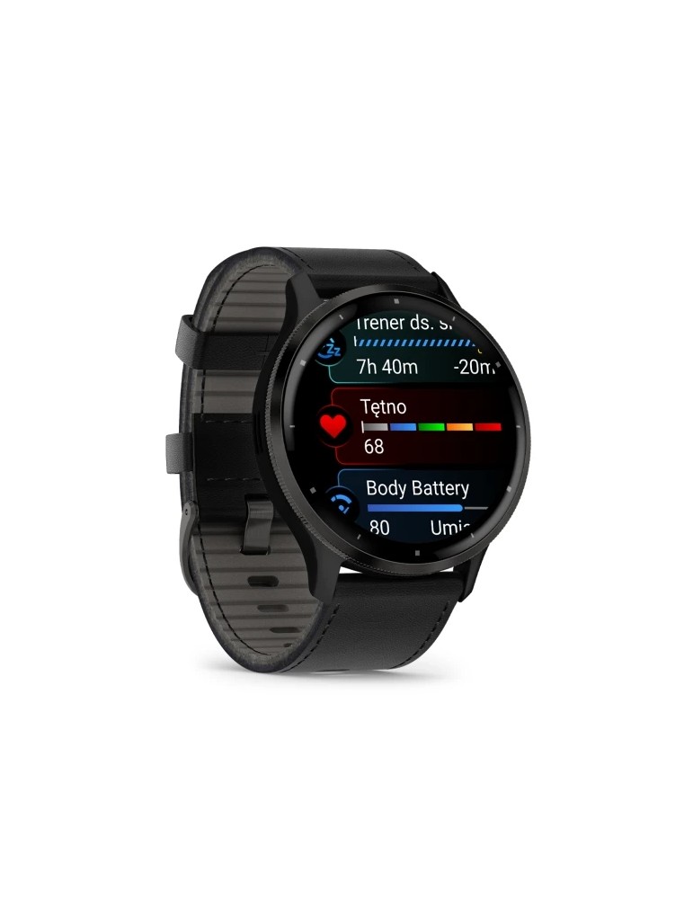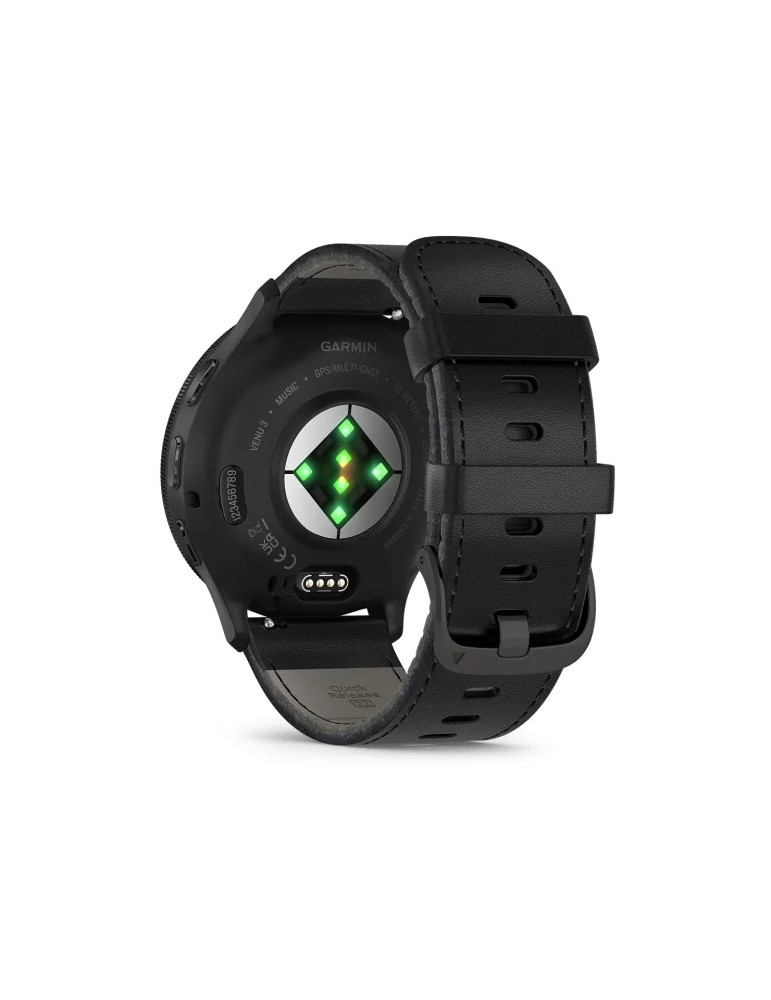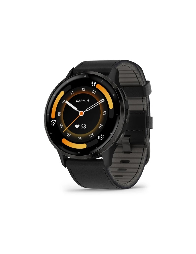 Garmin Venu 3 - Slate Stainless Steel Bezel with Black Case and Black Leather Band