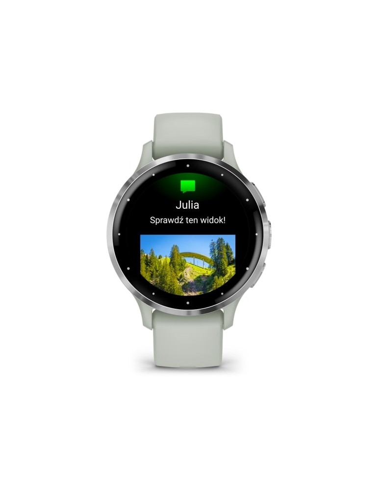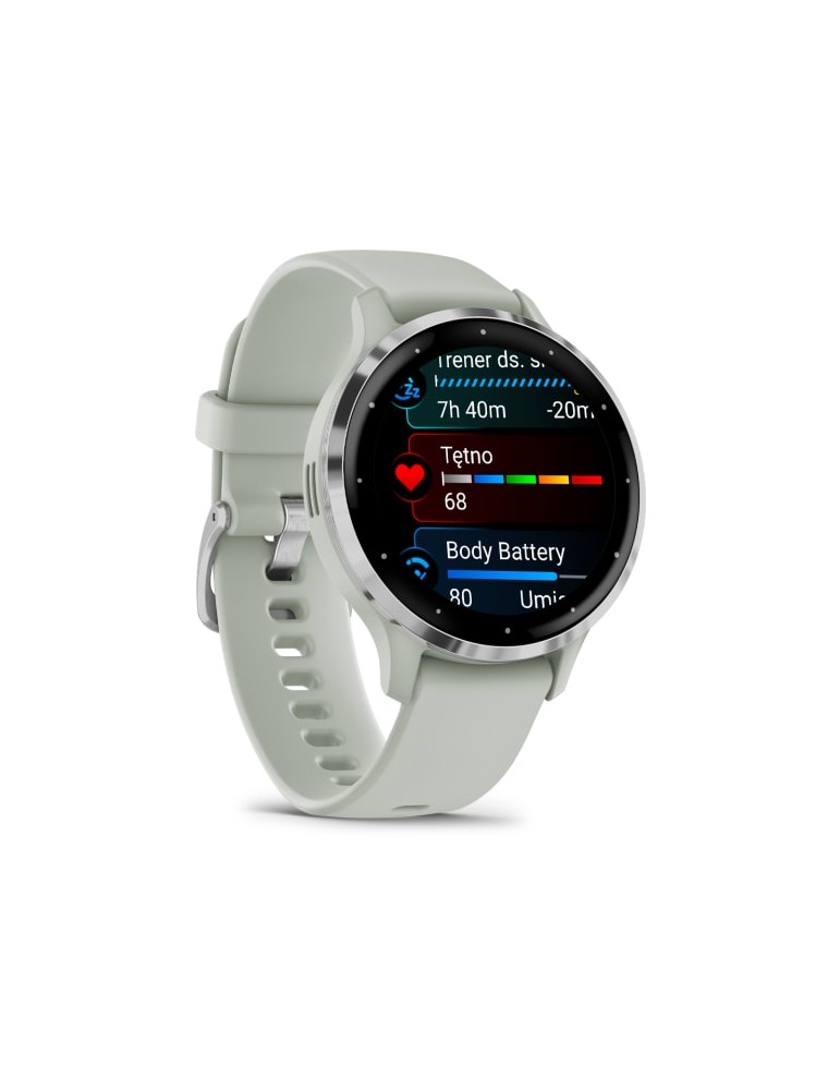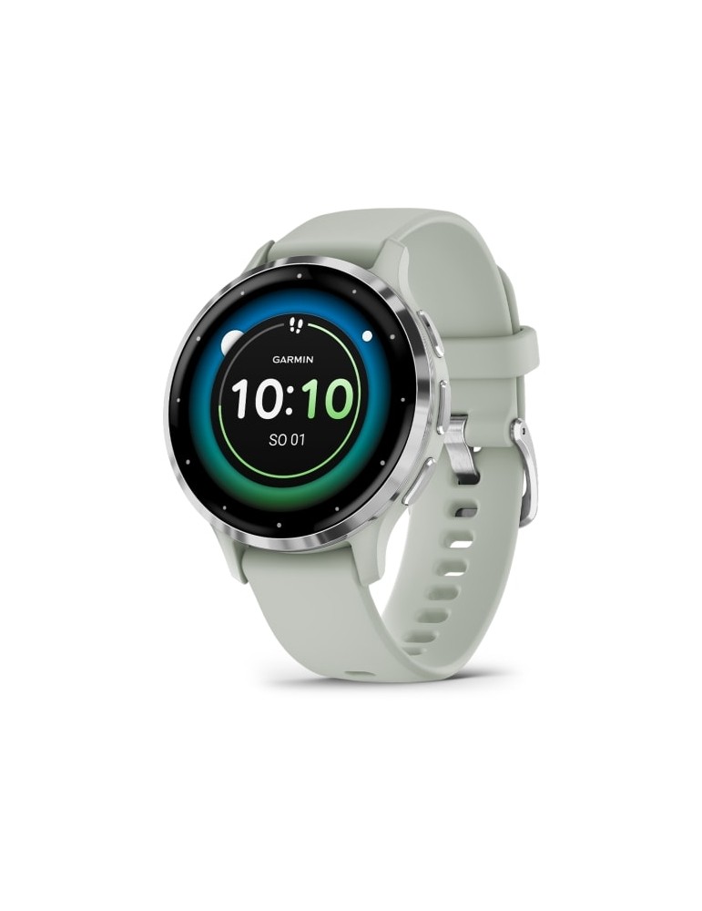 Garmin Venu 3S - Silver Stainless Steel Bezel with Sage Gray Case and Silicone Band