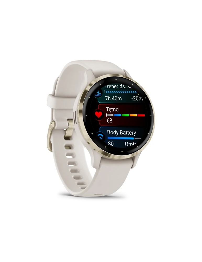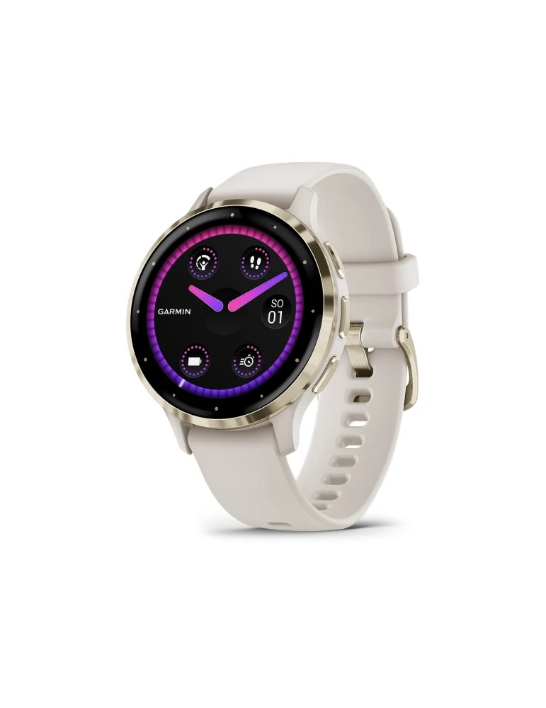 Garmin Venu 3S - Soft Gold Stainless Steel Bezel with Ivory Case and Silicone Band