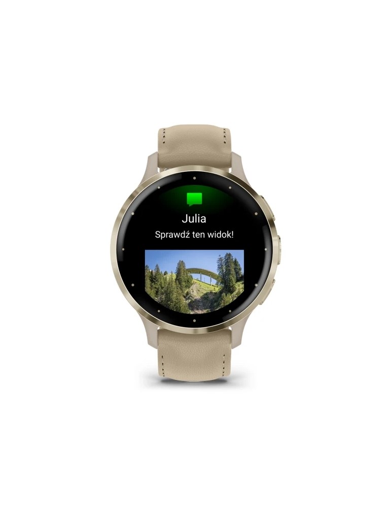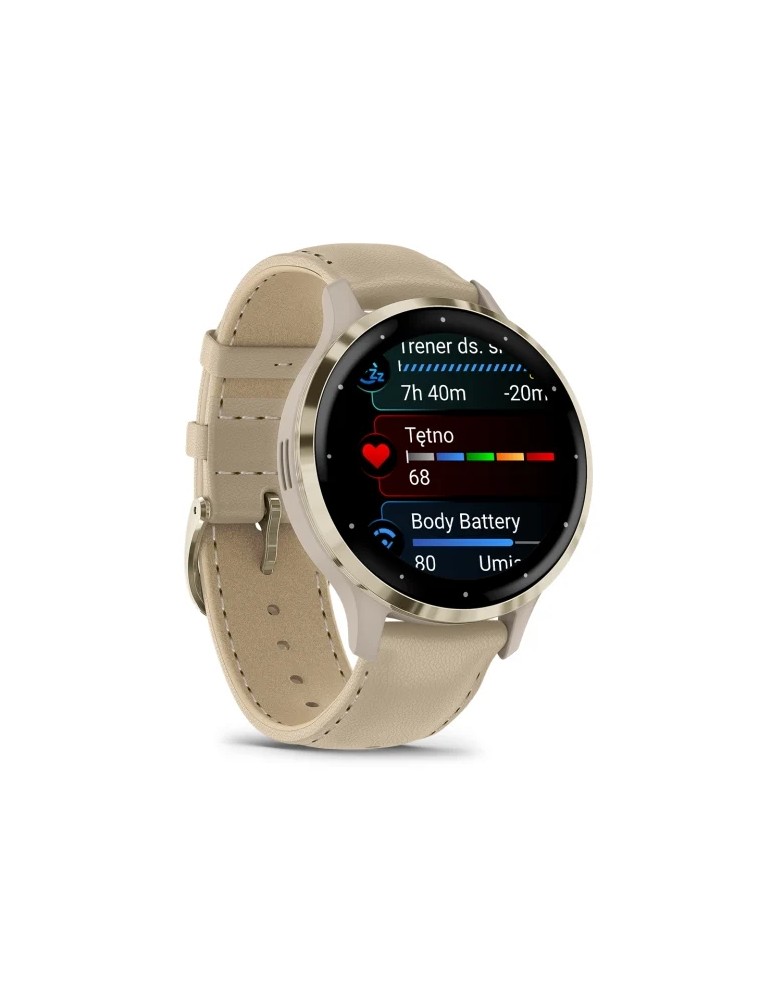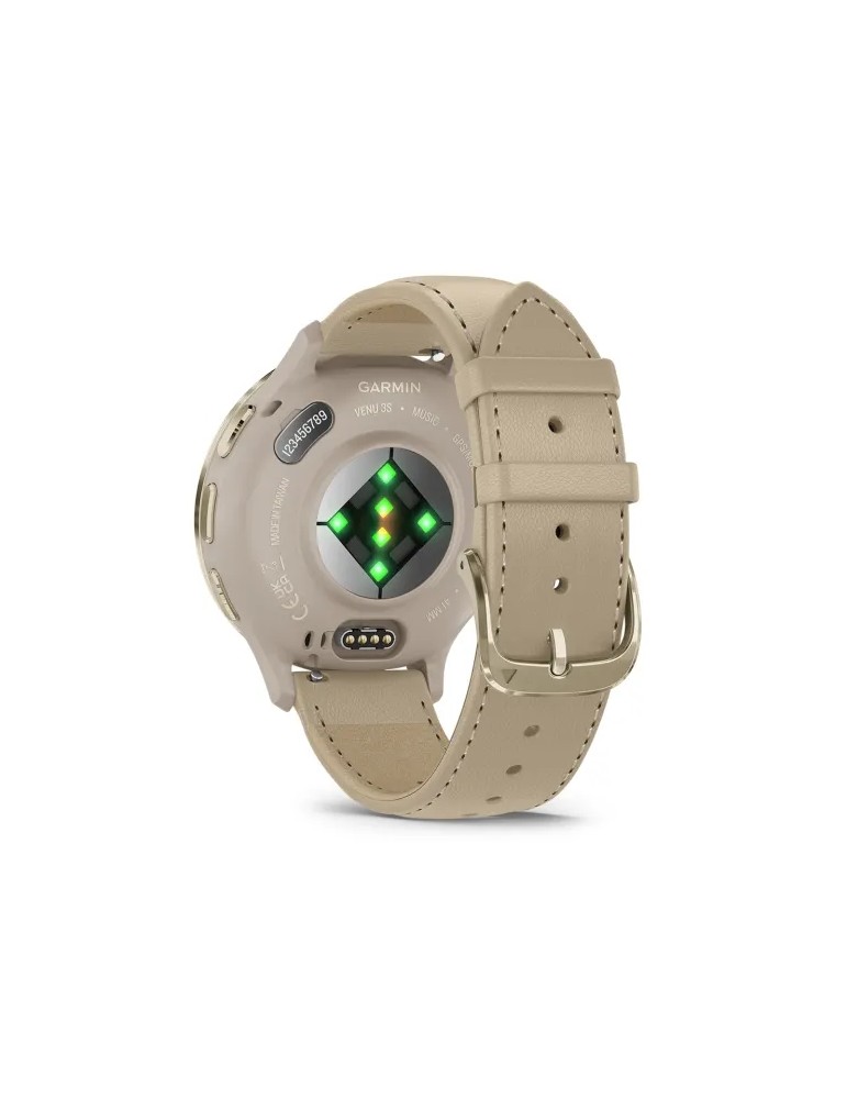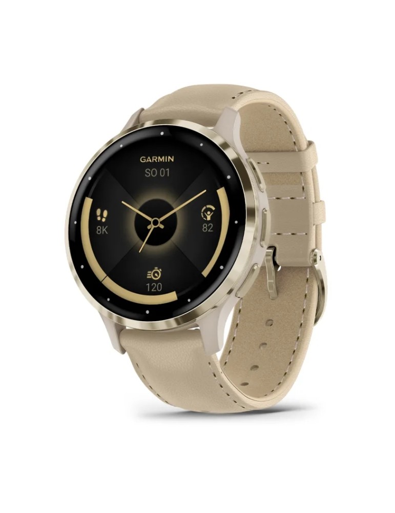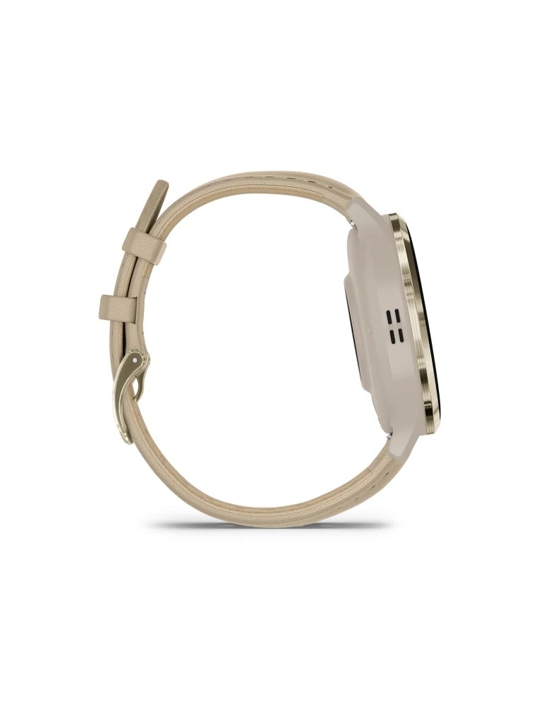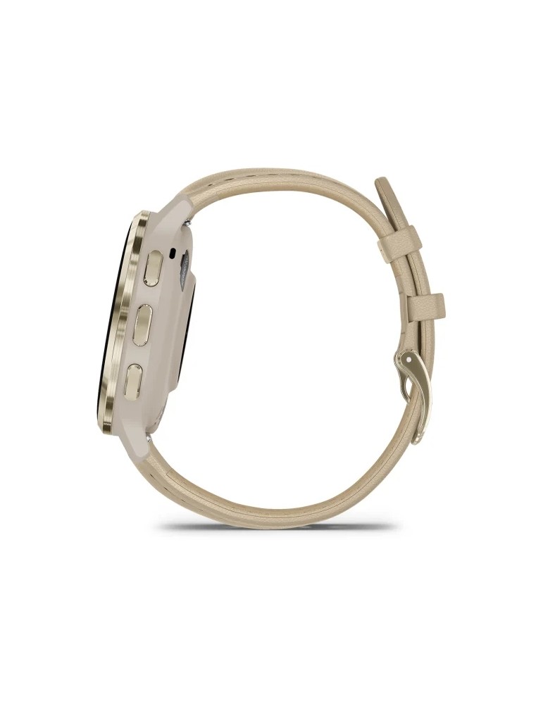 Garmin Venu 3S - Soft Gold Stainless Steel Bezel with French Gray Case and Leather Band