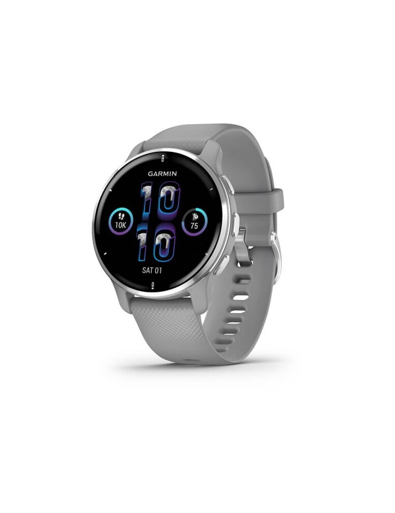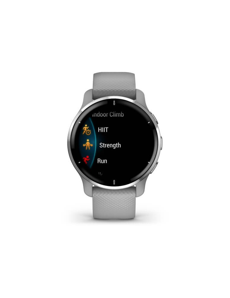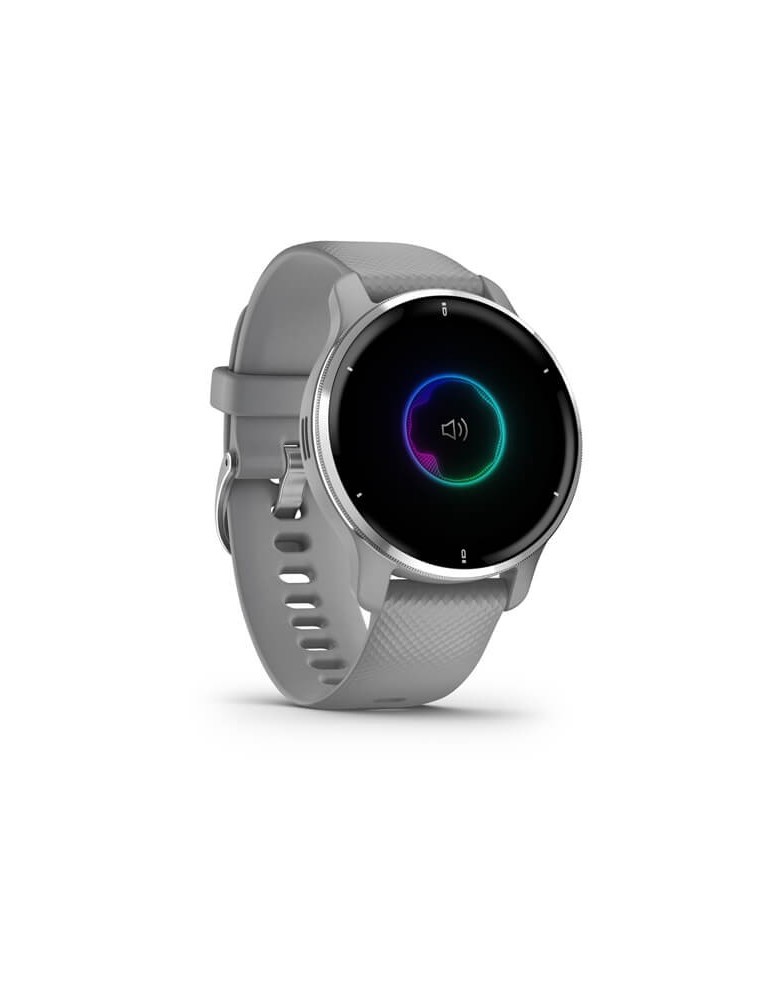 Garmin Venu 2 Plus Silver Stainless Steel Bezel with Powder Gray Case and Silicone Band