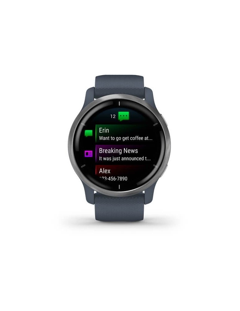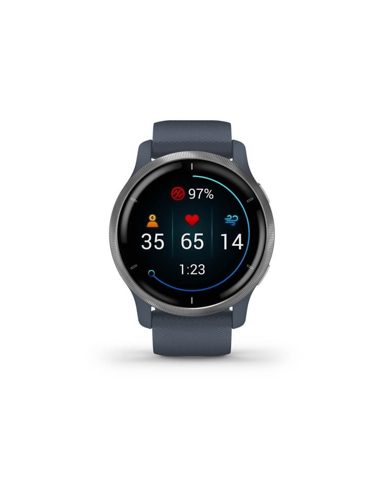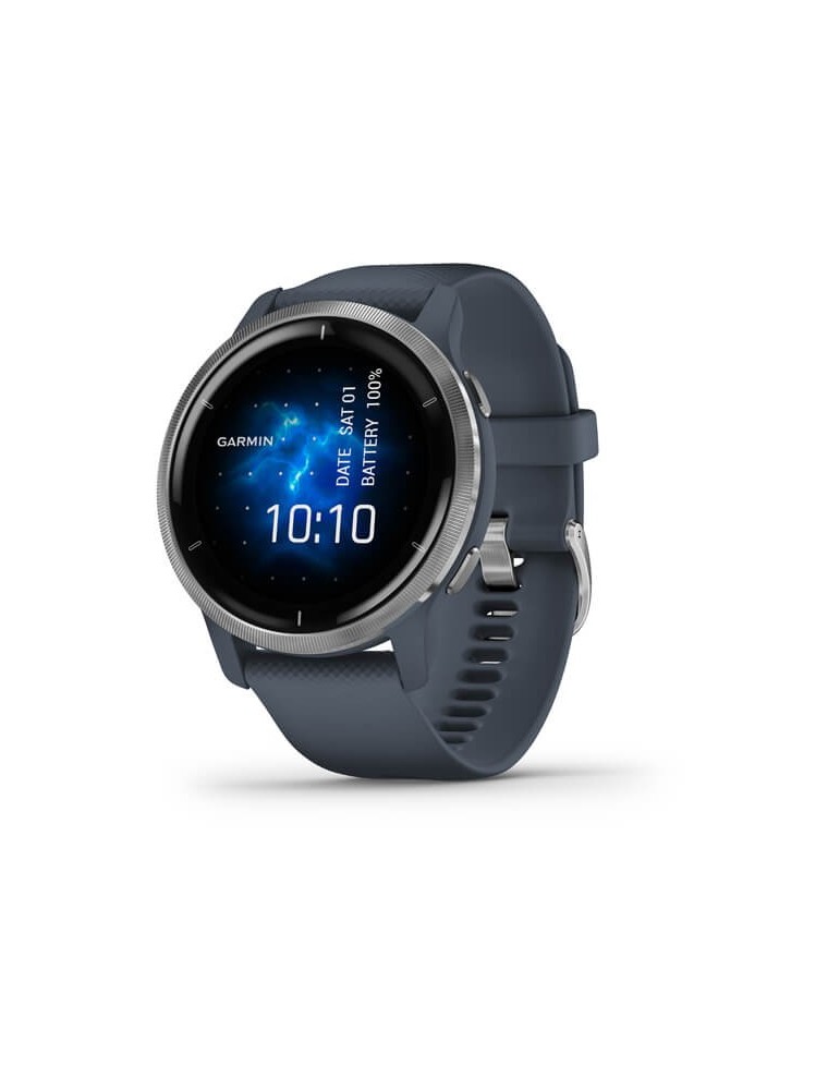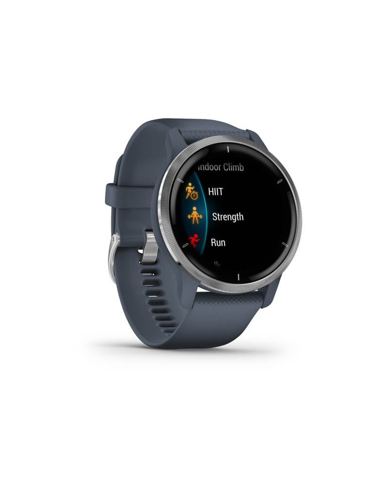 Venu 2 Silver Bezel with Granite Blue Case and Silicone Band