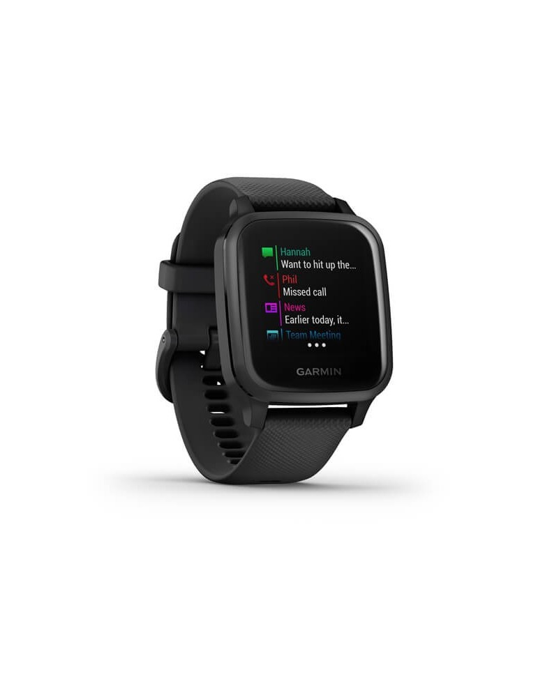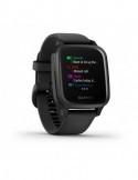 Garmin Venu Sq Music - Slate Aluminum Bezel with Black Case and Silicone Band