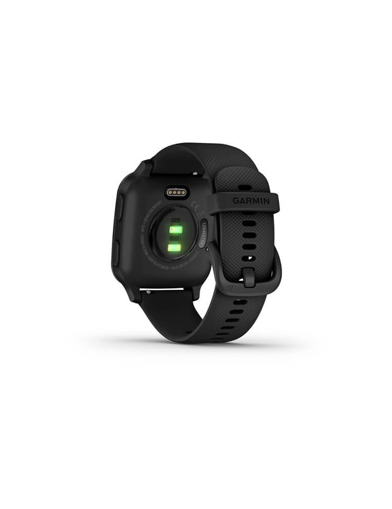 Екран Venu Sq Music Edition вкритий міцним склом Corning® Gorilla® Glass 3, обрамляє його легкий та практичний алюмінієвий безель, стильний силіконовий ремінець комфортний у носінні. Цей годинник створений, щоб супроводжувати вас в усіх ваших справах.