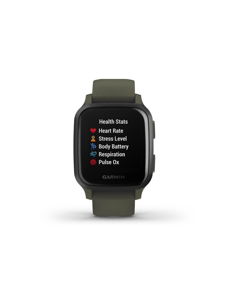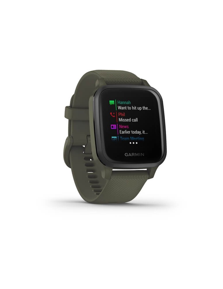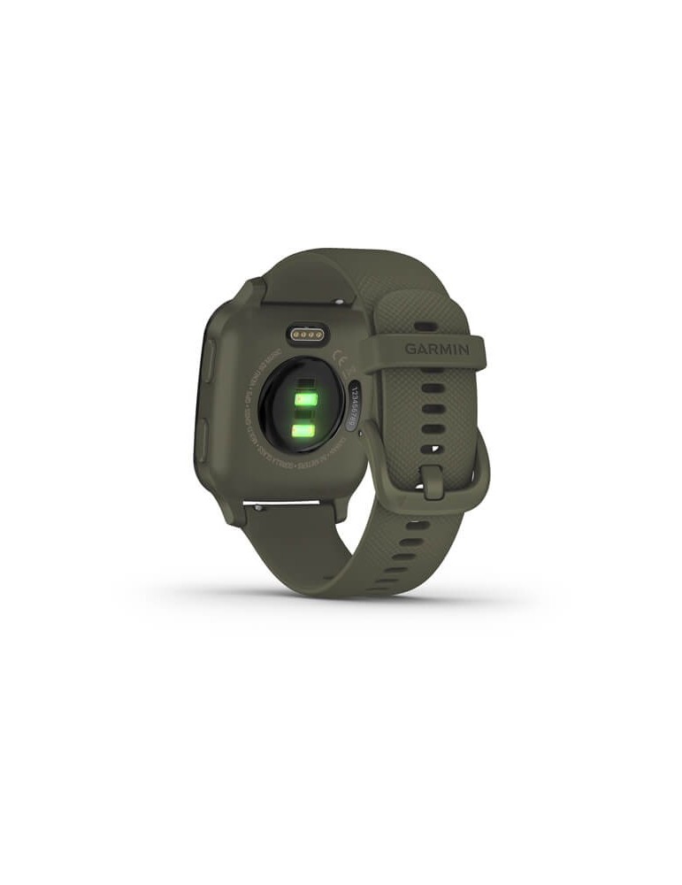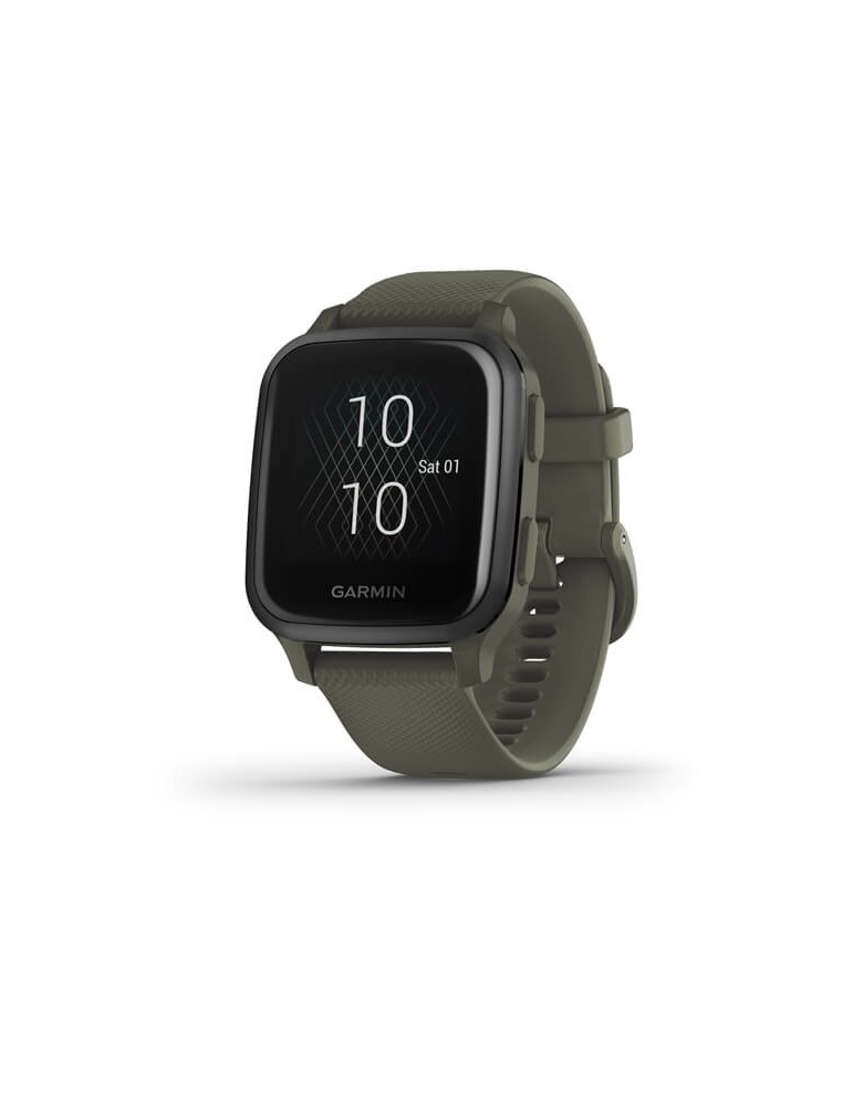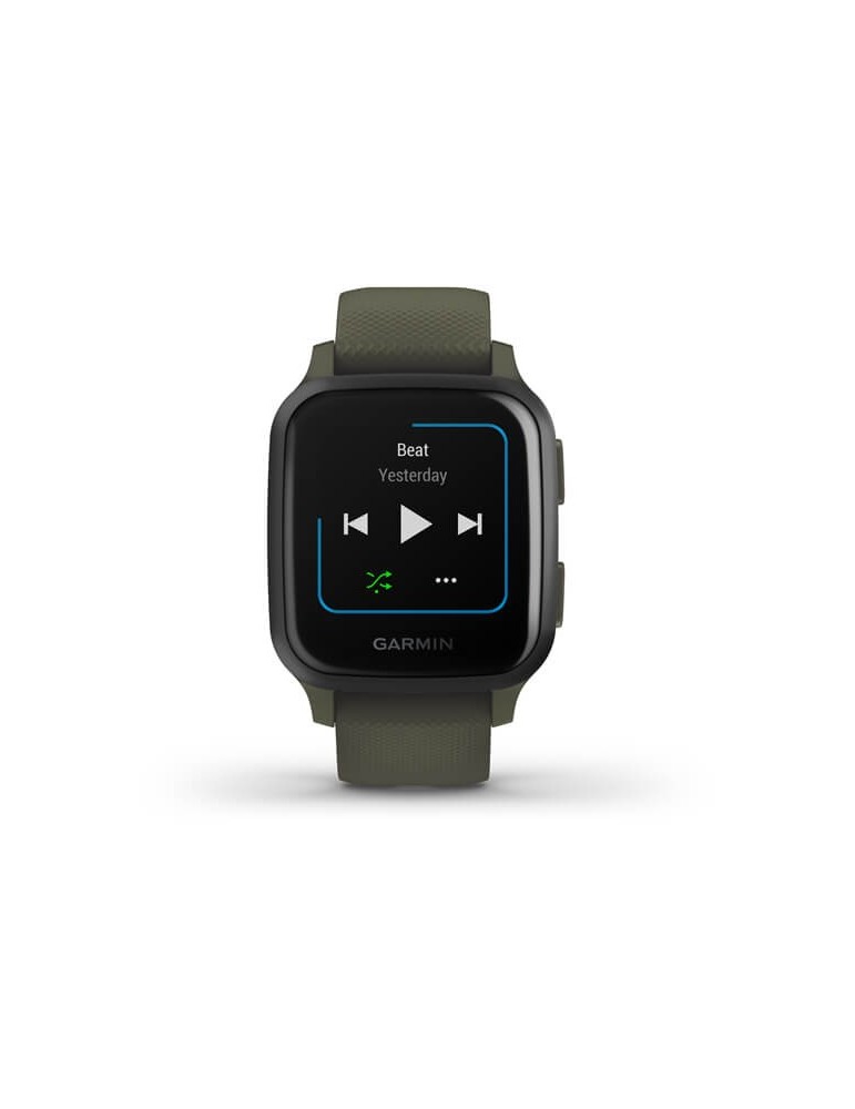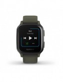 Garmin Venu Sq Music - Slate Aluminum Bezel with Moss Case and Silicone Band
