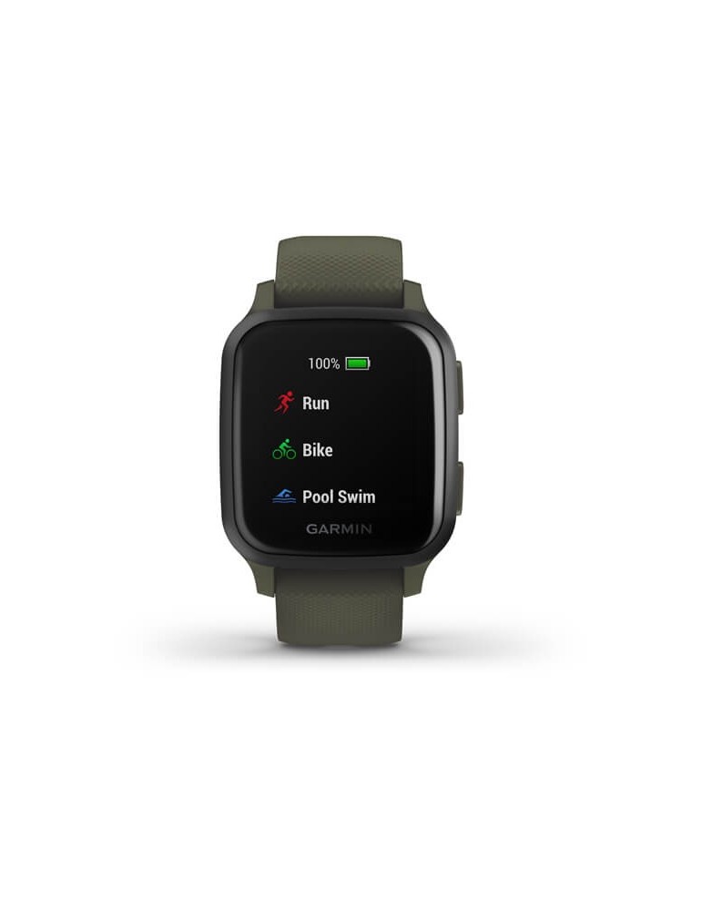 - Бігайте, займайтесь спортивною ходьбою, катайтесь на велосипеді, грайте у гольф разом з вбудованими спортивними програмами, яких у годиннику Venu Sq більше 20.