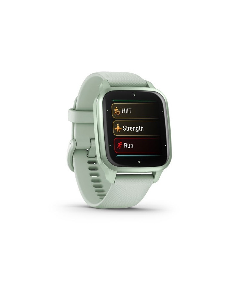 Розумний годинник Venu Sq 2 пропонує понад 25 спортивних занять для тренувань на свіжому повітрі з GPS та у закритих приміщеннях, у тому числі ходьбу, біг, велоспорт, плавання в басейні, гольф, високоінтенсивні інтервальні тренування HIIT, теніс та багато інших.