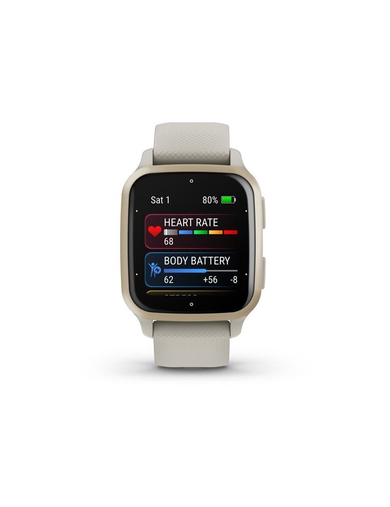 Garmin Venu® Sq 2 Music Cream Gold Aluminum Bezel, French Gray Case and Silicone Band